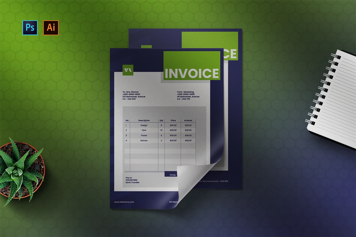 The invoice designs from our templates will present your brand with a professional look. Your invoices will look stylish and functional.