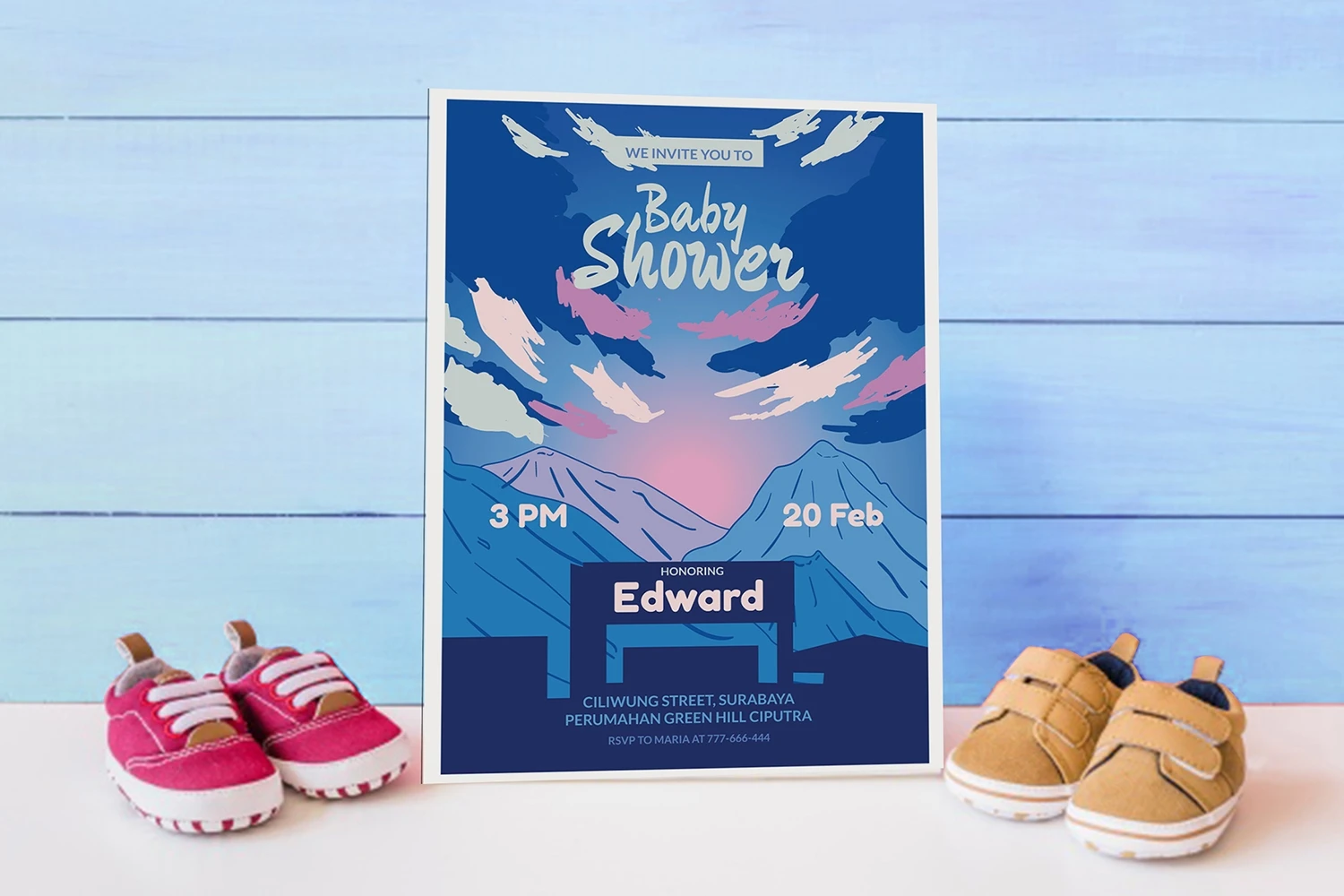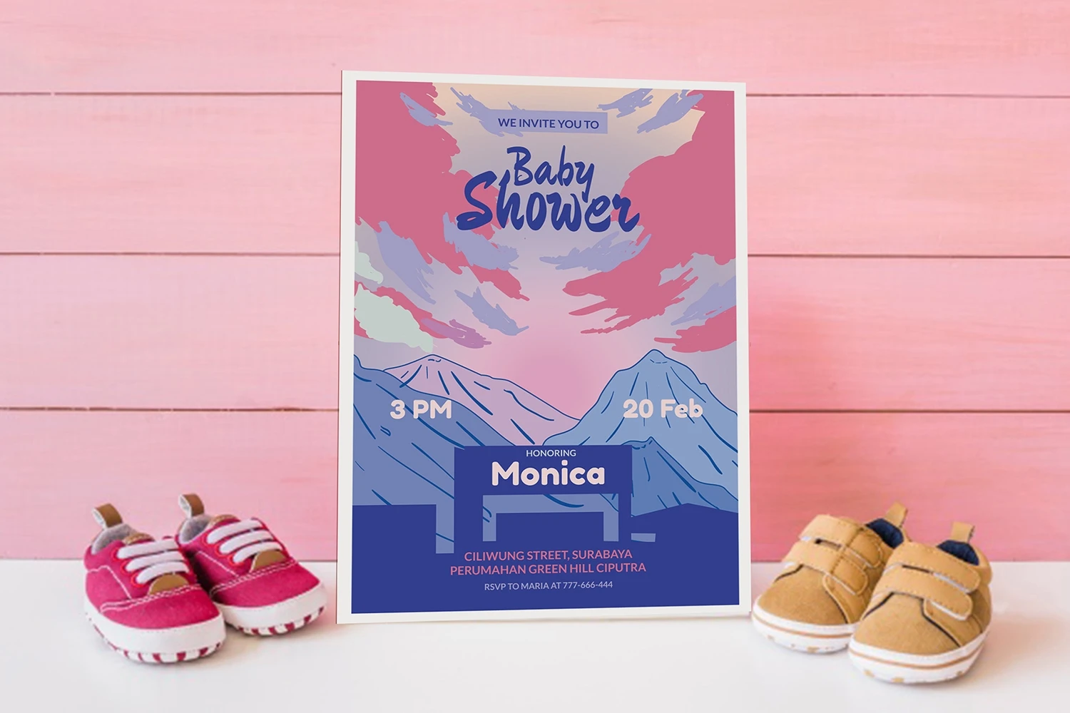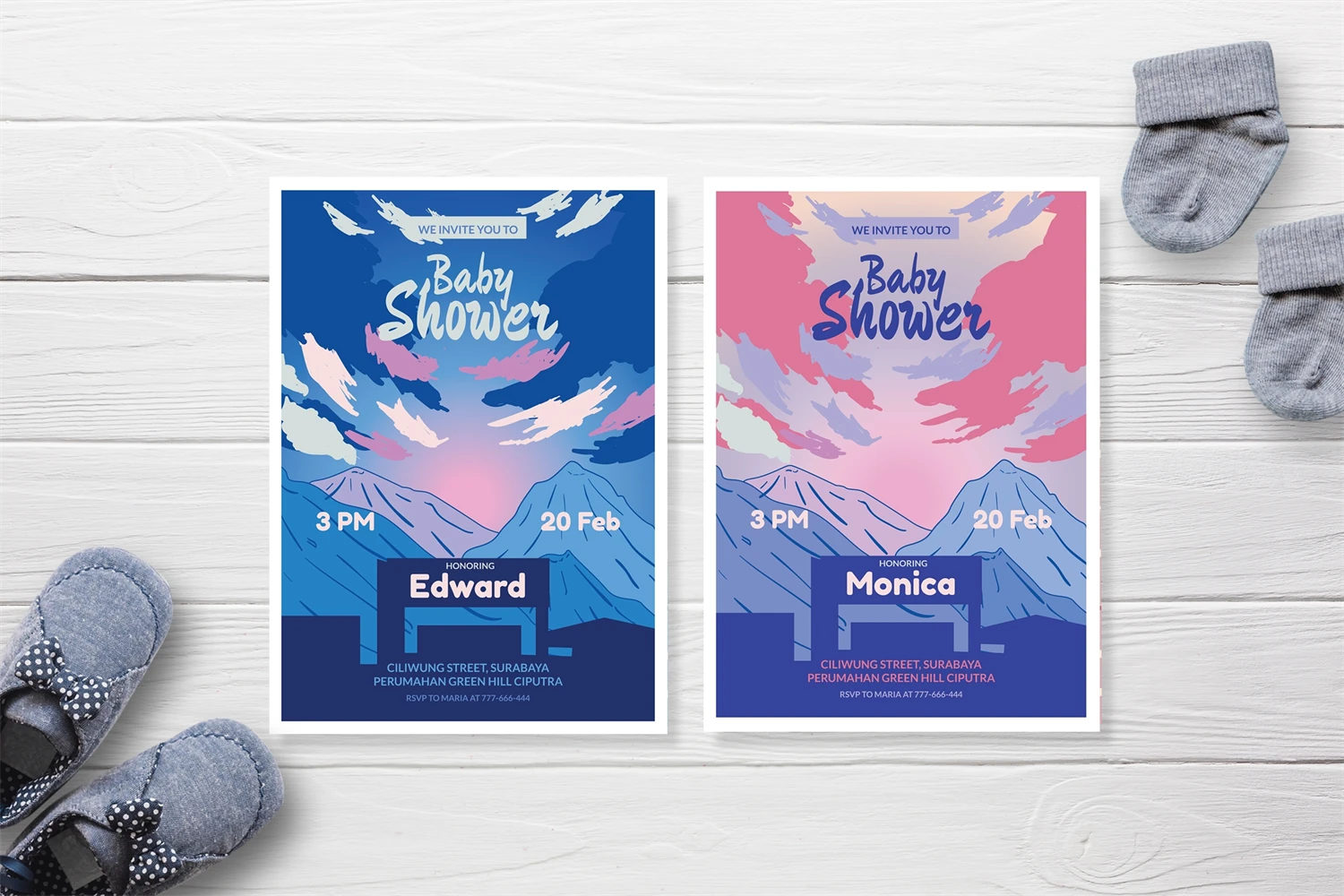 Purpel Sky - Baby Shower Invitation, is an invitation card leaflet, poster design, etc. Simple and very elegant You can easily edit & adjust each design because each layer such as text, images and shapes are well organized and highlighted.
