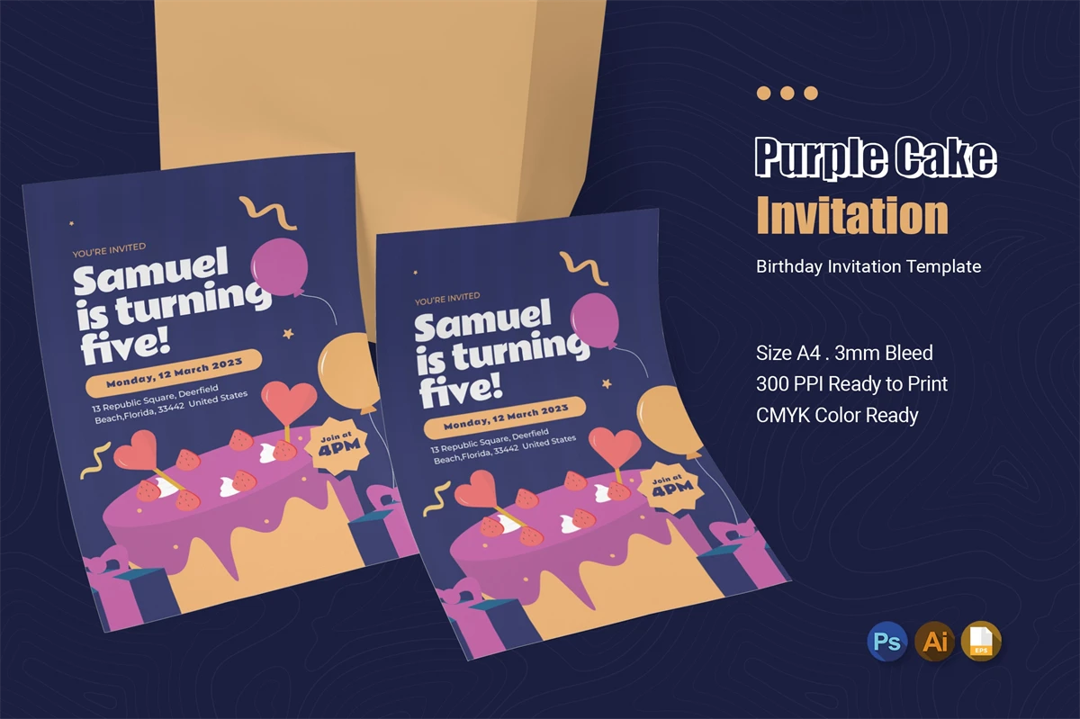 Of course you want to invite friends to your birthday party with the best invitations! Impress the invited guests with your style of invitation, by using this invitation card template. You can easily edit & customize each of the designs because every component is well organized and editable.