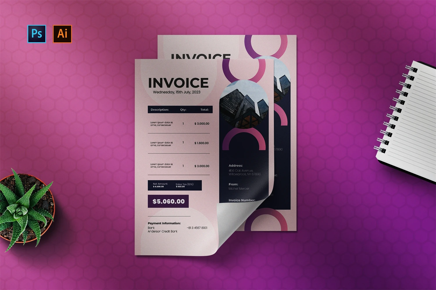 professional, up-to-date invoice templates that can be used for personal, business, or company billing. You can easily change these template files. You can quickly change the text, fonts, and colors with just a few clicks to create your own content and color scheme. This invoice template will make it easy and quick for you to make an invoice.