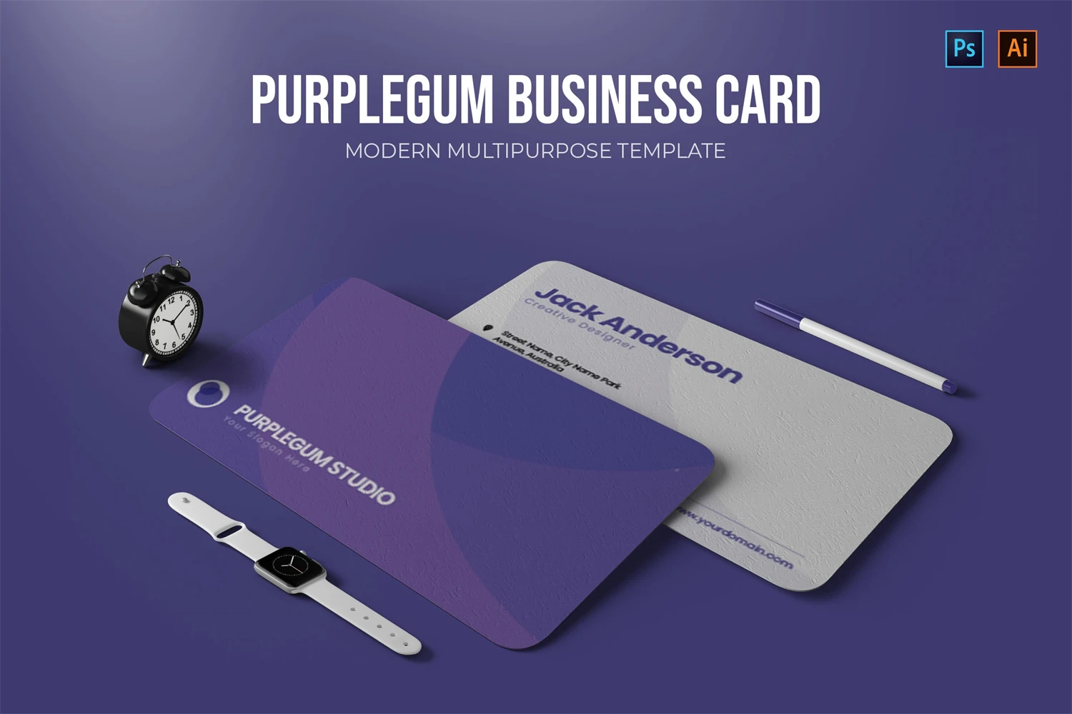 This Purplegum - Business Card make your business cards look professional. You can use this business card for, identity, company business cards, Corporate Business, Creative, Blogs, Photographers, Artists, Designers, etc.