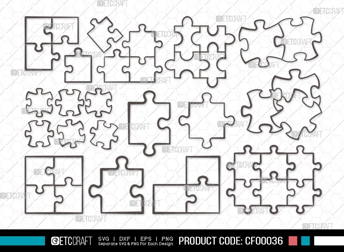 Step into the realm of creativity with our Puzzle Outline Jigsaw Pattern Piece SVG Cut File Bundle – a digital collection designed to add an intriguing and symbolic touch to your artistic ventures, resembling the unity and complexity of a puzzle.
