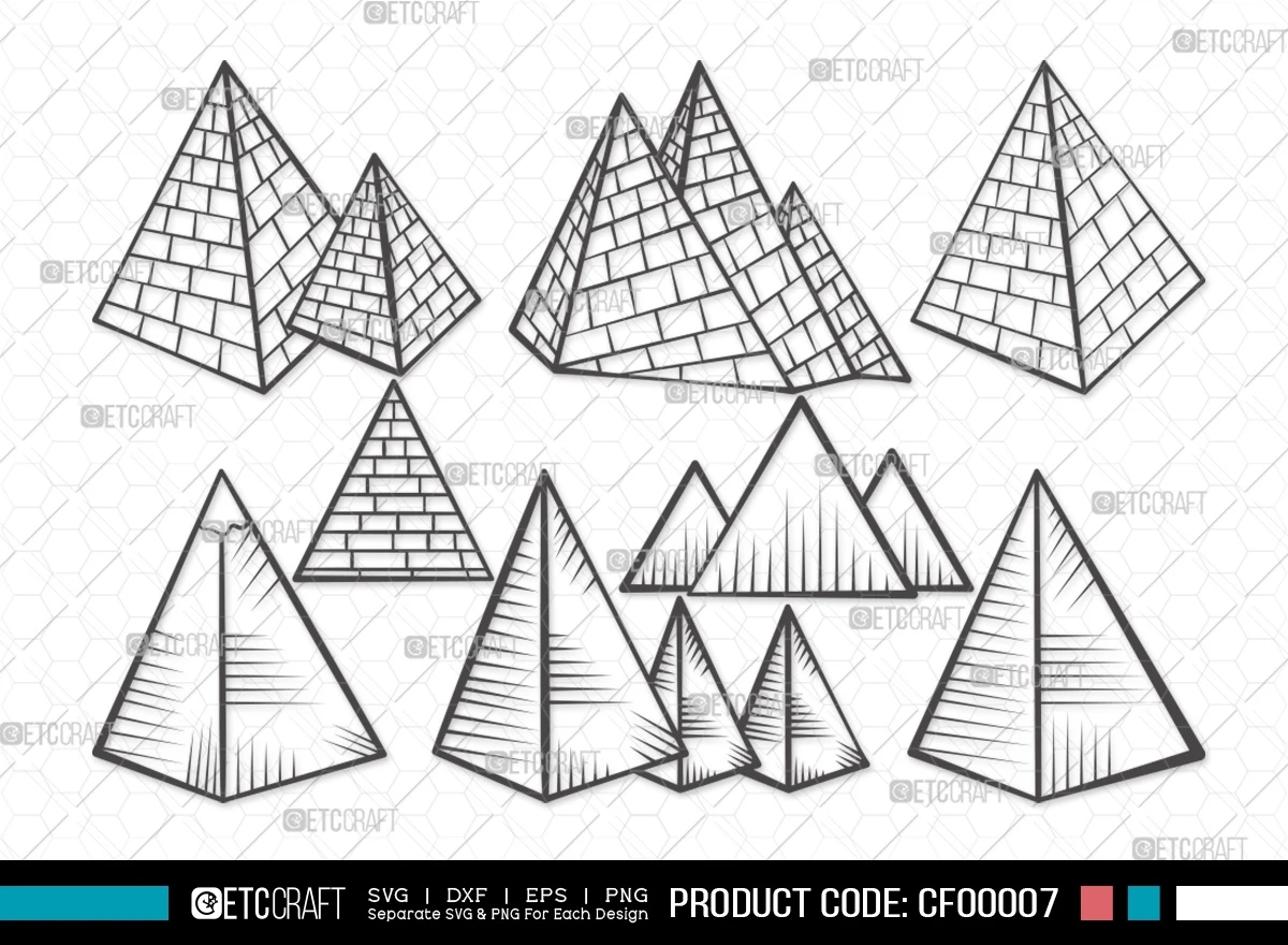 Uncover the mysteries of ancient Egypt with our Pyramid SVG Cut File Egyptian Landmark Egypt Outline Bundle. Whether you're a history buff, a traveler, or a creative enthusiast, this collection allows you to pay homage to the timeless marvels of Egyptian architecture. Delve into the wonders of Egypt today and craft designs that transport you to a world of ancient grandeur!