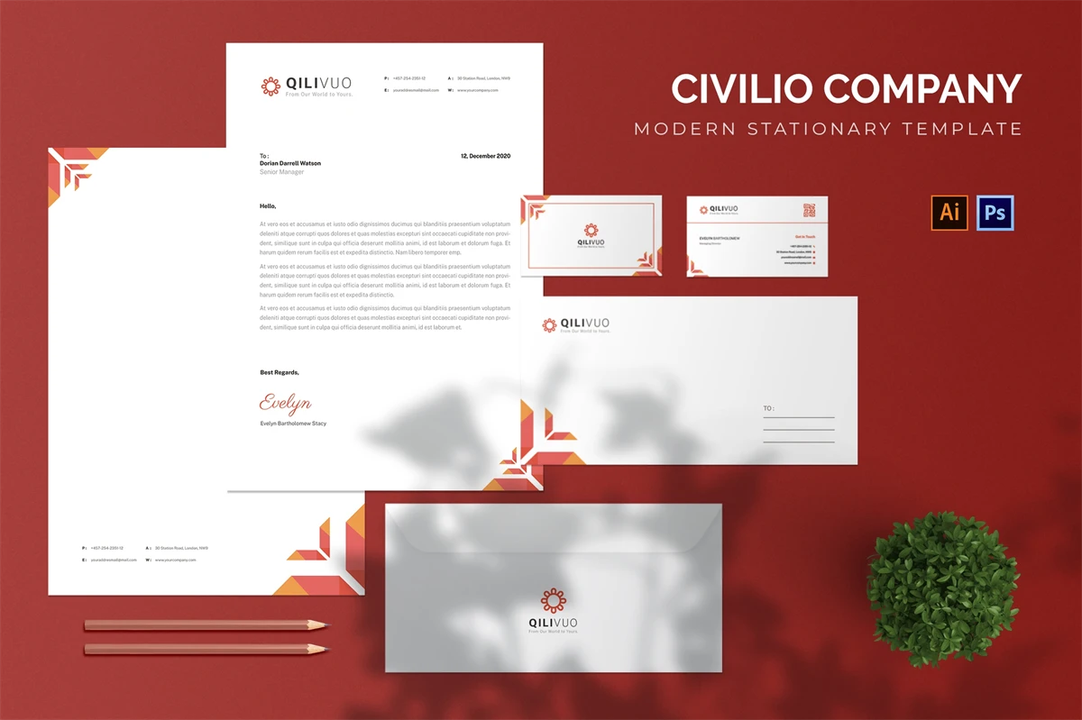 Qilivuo Company - Stationary. This template is great for your business and this design will make your interested, elegant, and easily editable according to your needs. I hope you enjoy for this stationary.