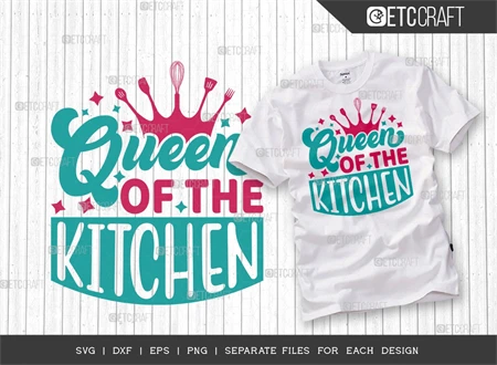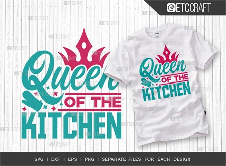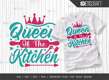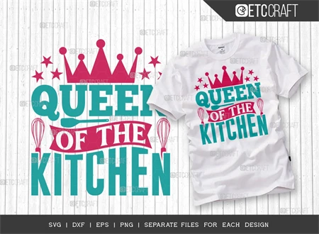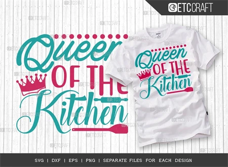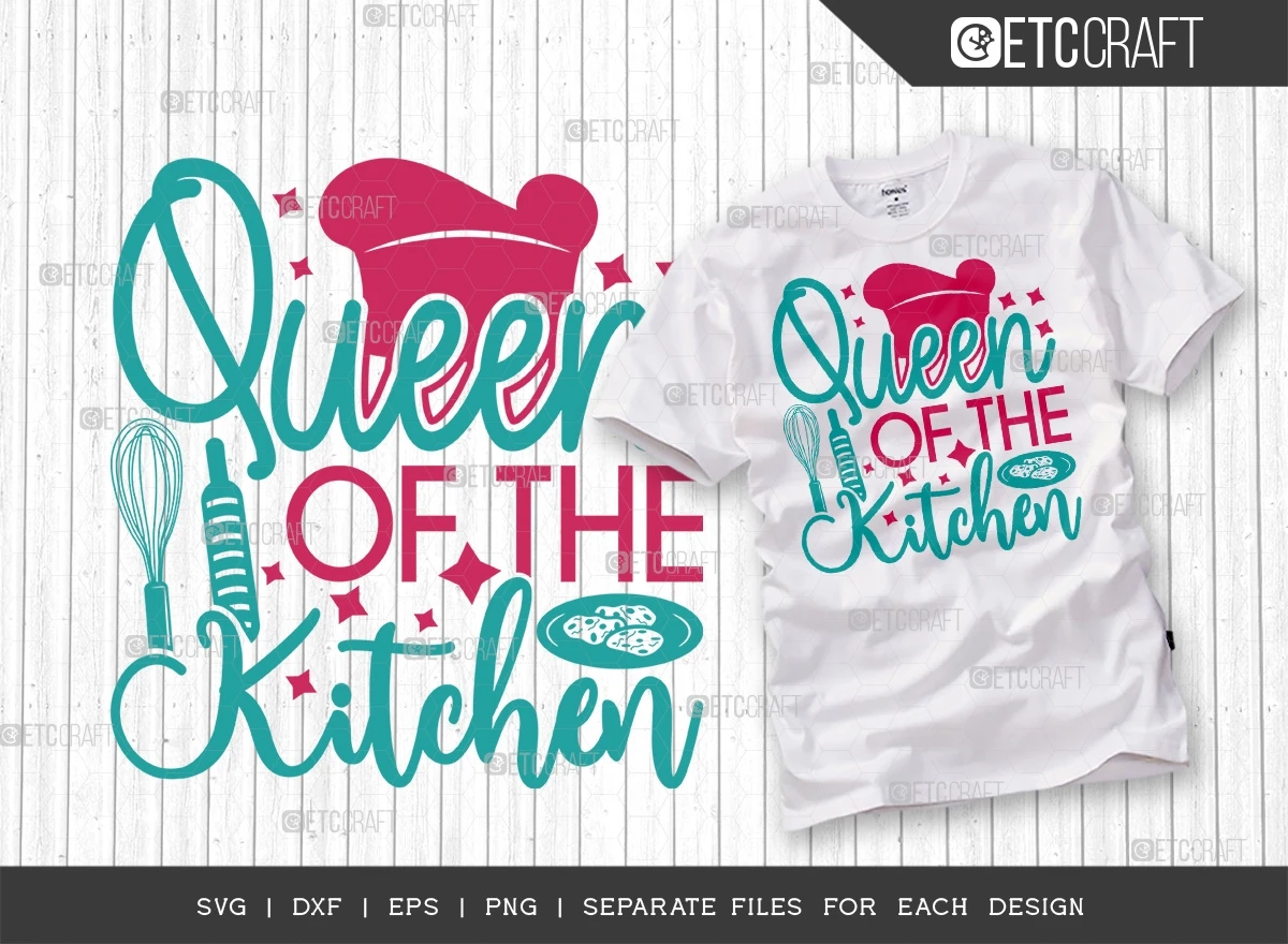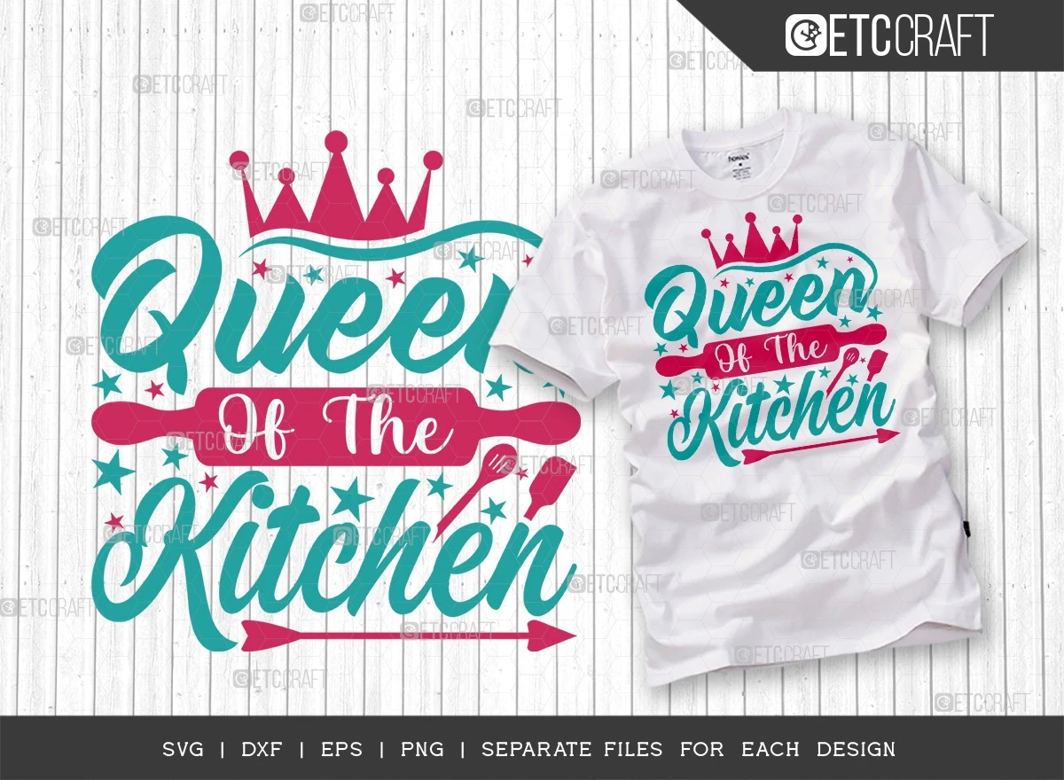 The Queen Of The Kitchen SVG Bundle - a delightful t-shirt design that combines style and functionality. This easy SEO product description will highlight the key features, benefits, and frequently asked questions about this unique design.