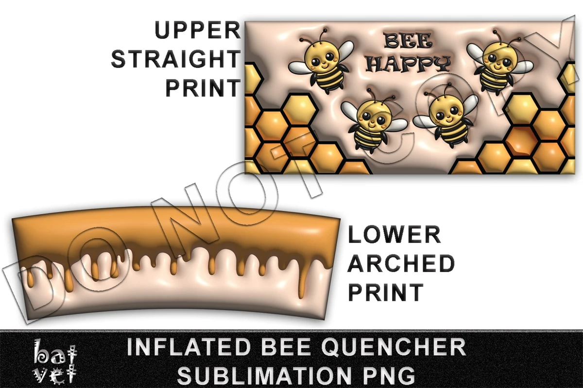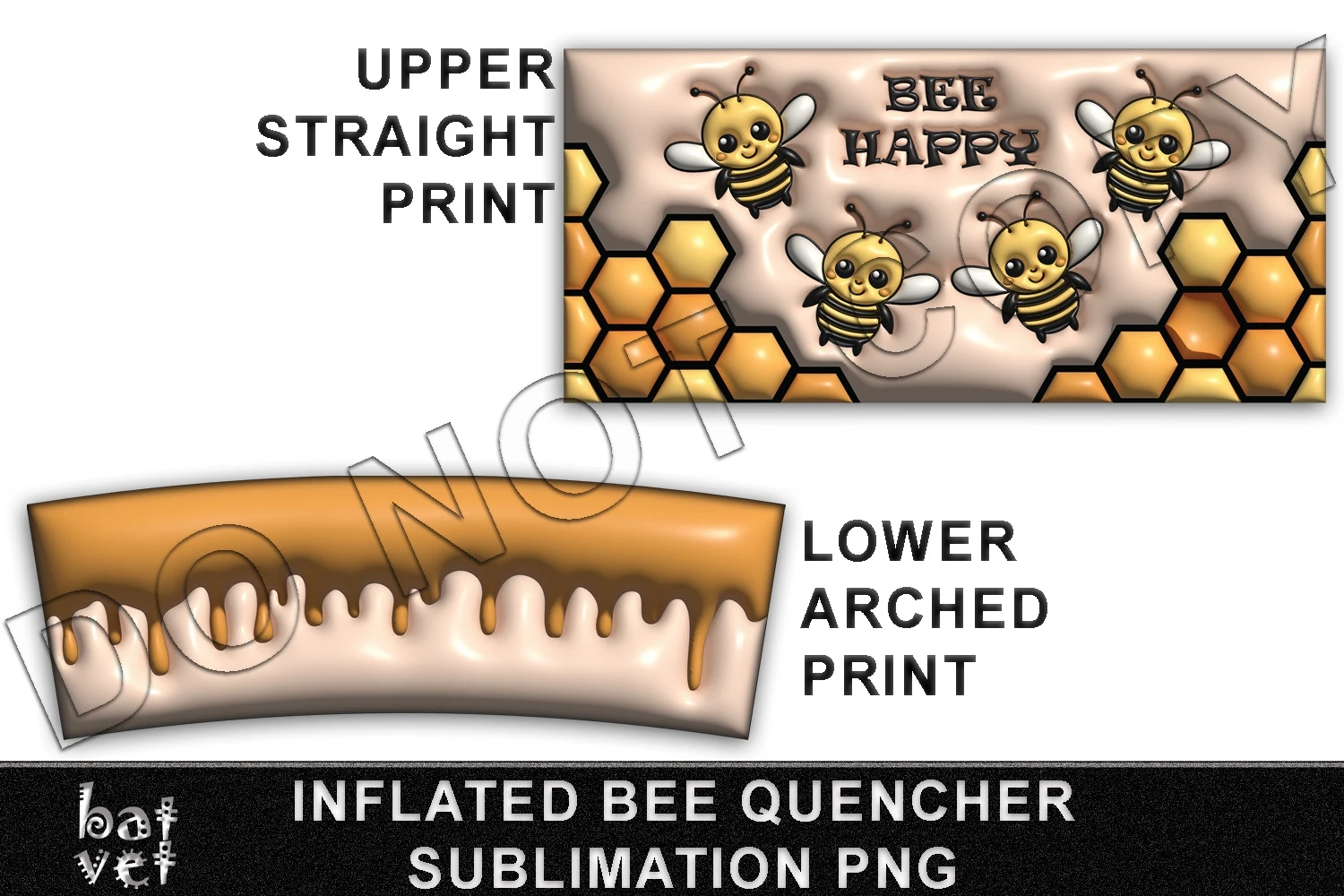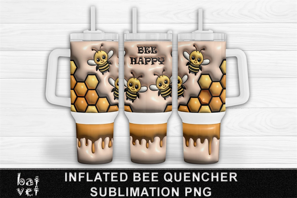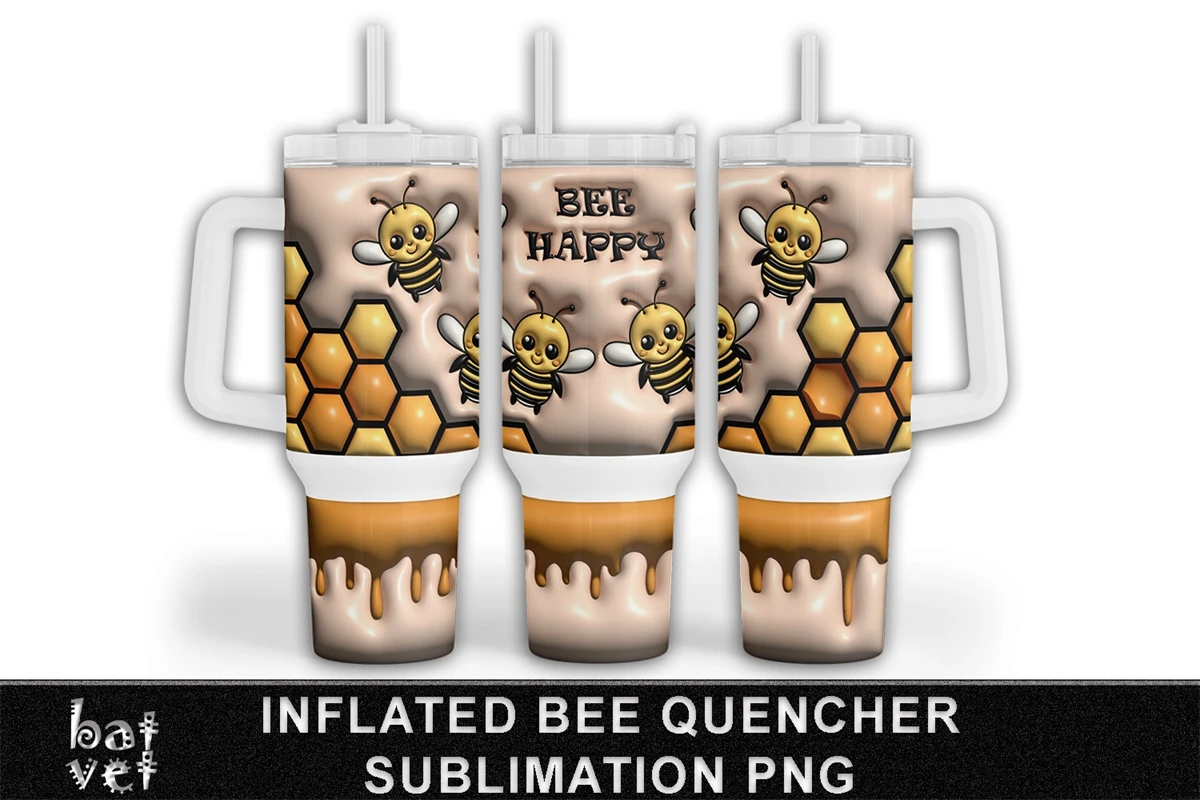 Quencher 3D Bee Tumbler Inflated Sublimation PNG Design