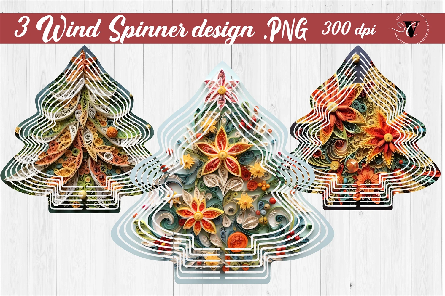 3D Wind Spinner sublimation, 3D Christmas tree sublimation, Wind spinner bundle, 3D christmas, Quilling sublimation