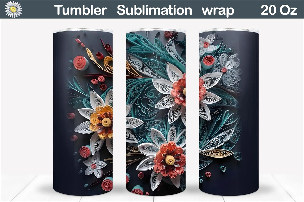 Quilling flowers Tumbler. Black And White Flowers Tumbler