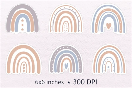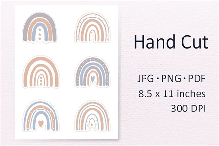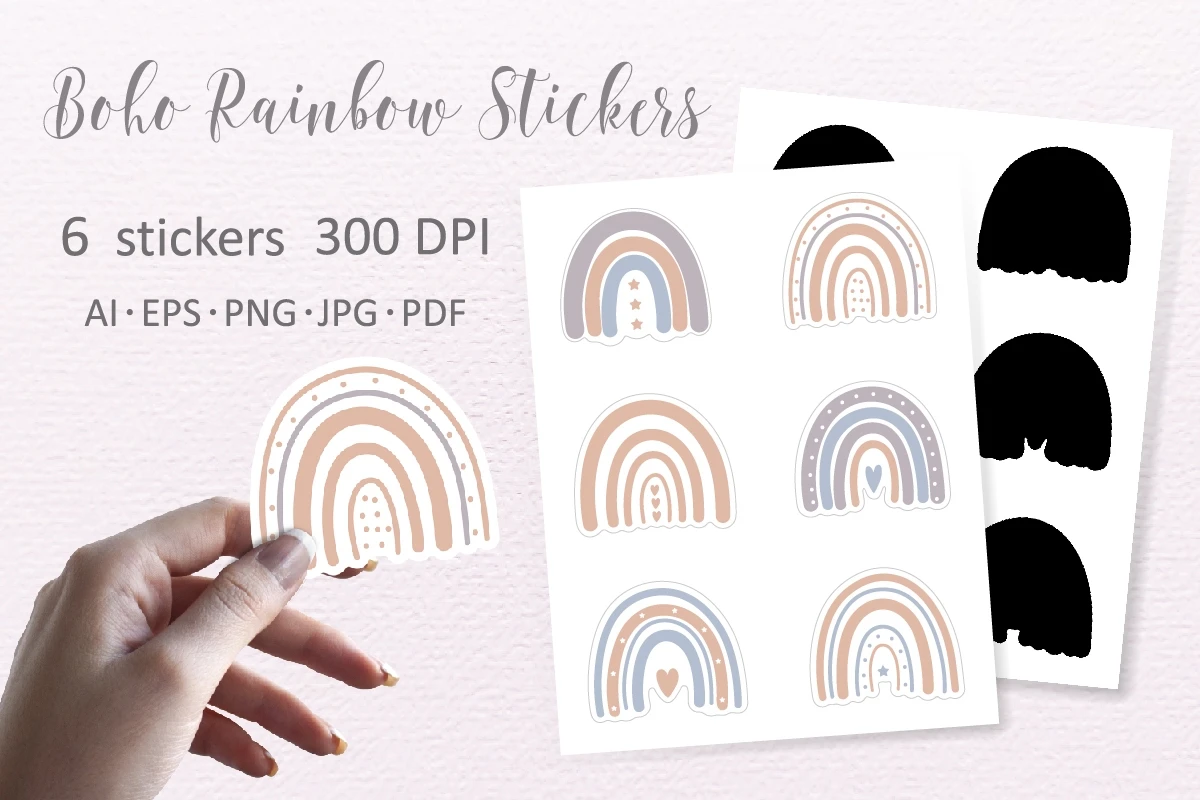 Rainbow boho stickers.Rainbow boho clipart.Rainbow boho Cricut Stickers.Rainbow boho Hand Cut Stickers.