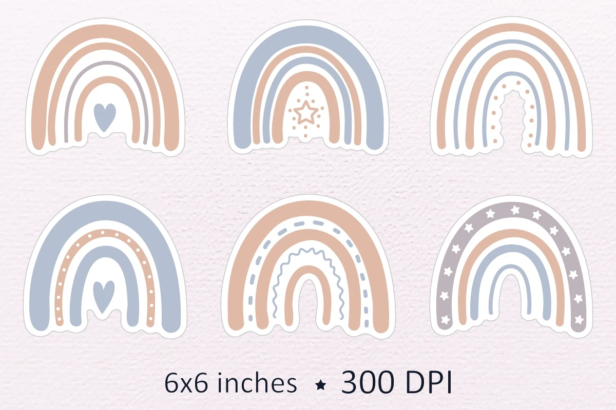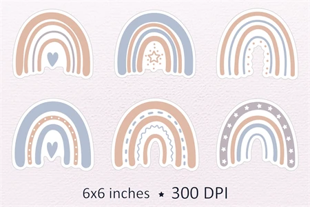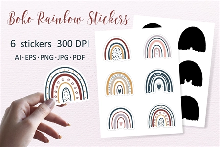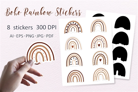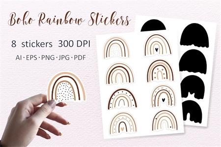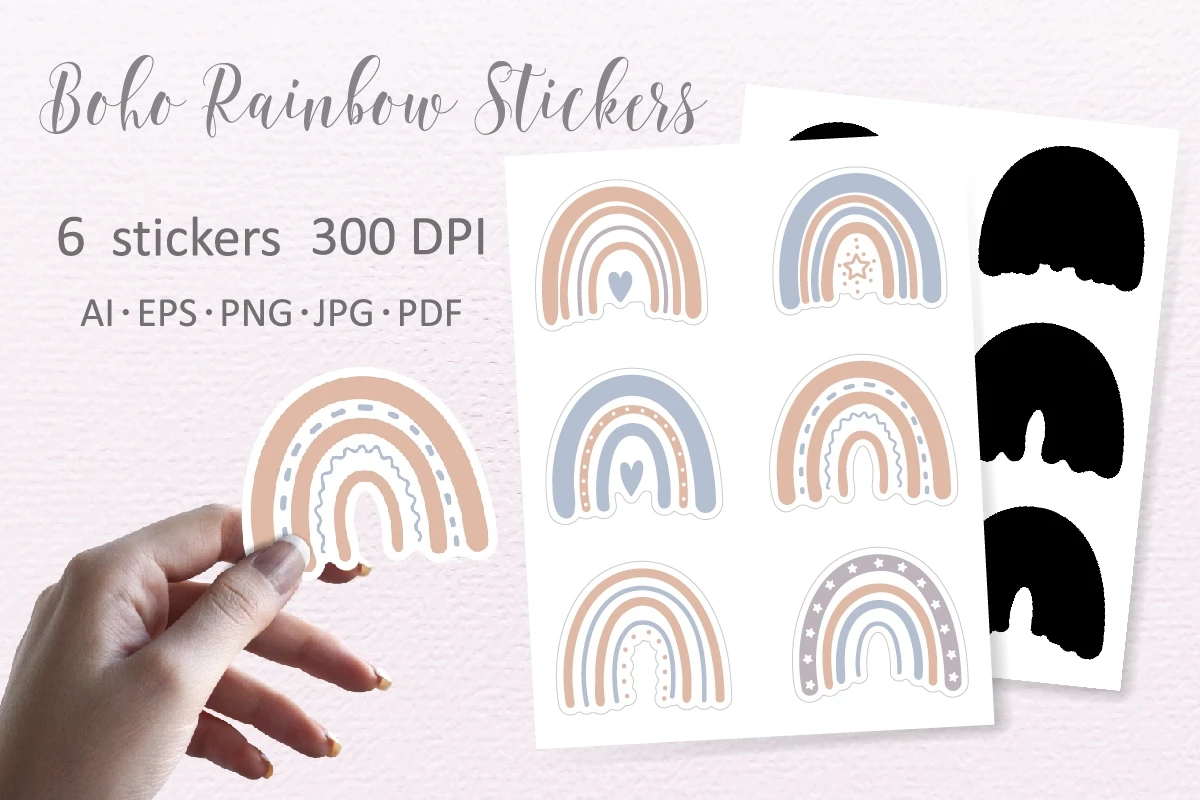 Rainbow boho stickers.Rainbow boho clipart.Rainbow boho Cricut Stickers.Rainbow boho Hand Cut Stickers.