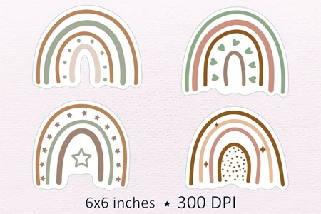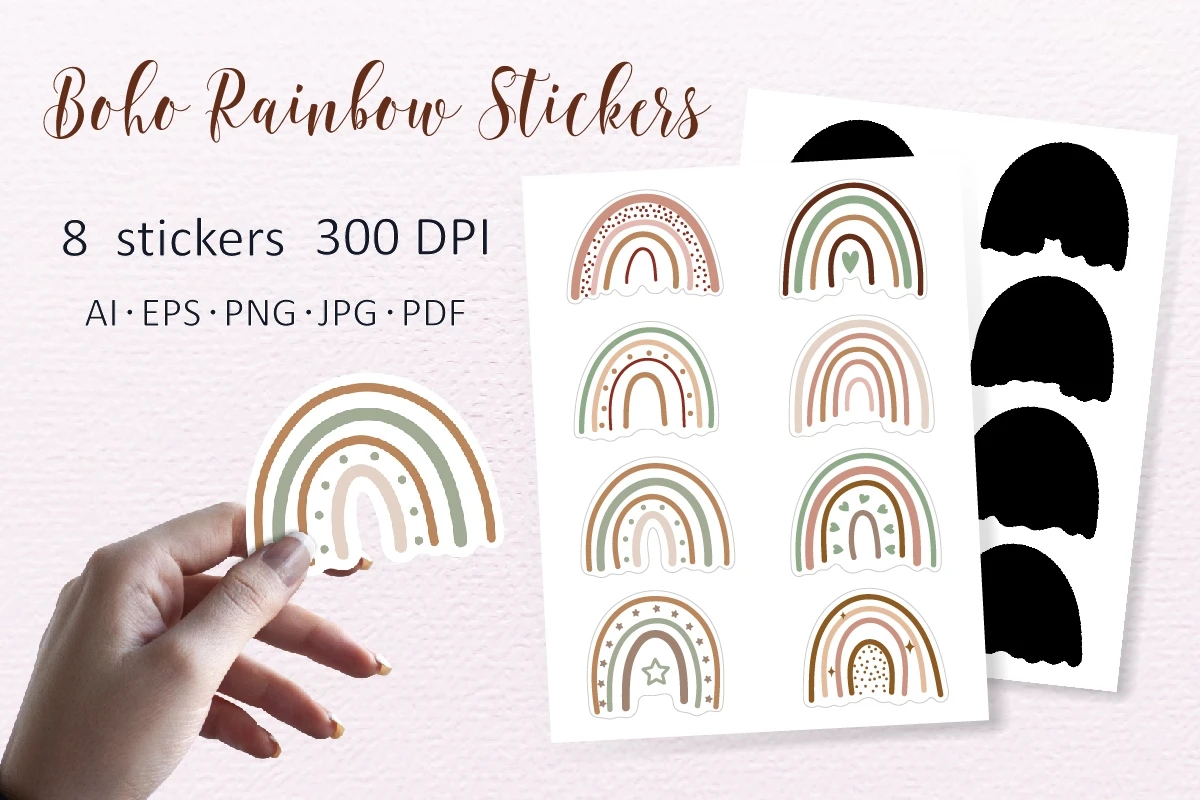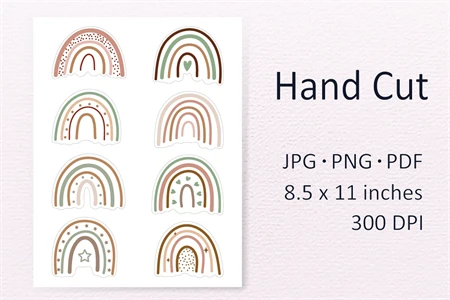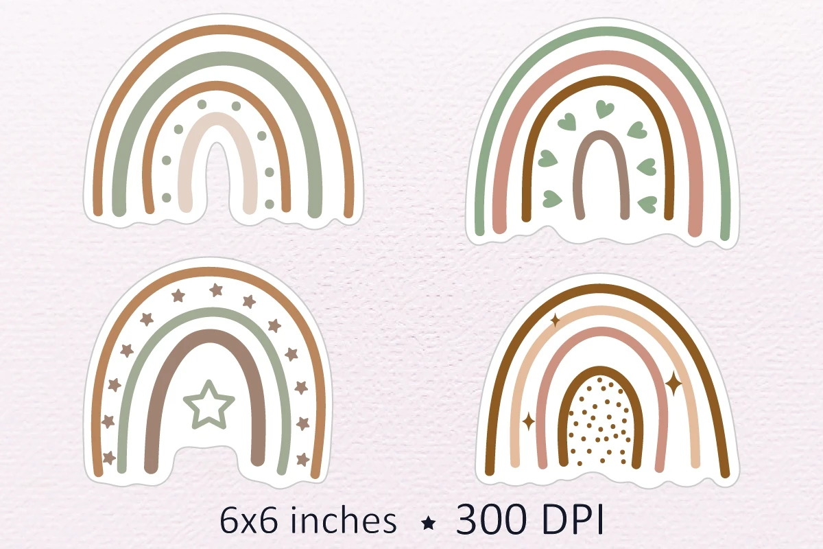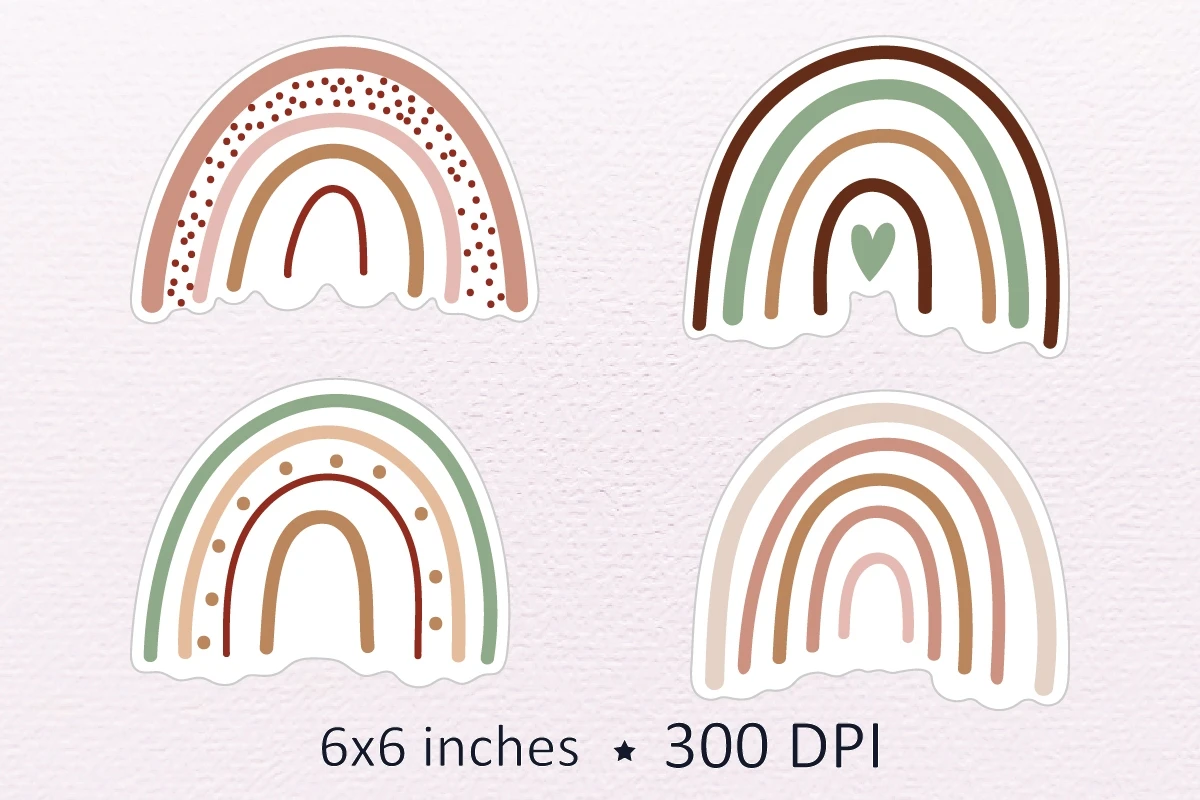 Rainbow boho stickers.Rainbow boho clipart.Rainbow boho Cricut Stickers.Rainbow boho Hand Cut Stickers.