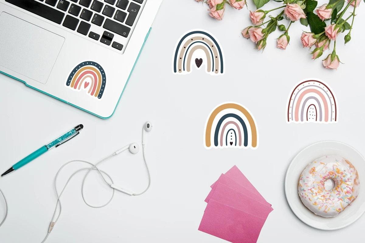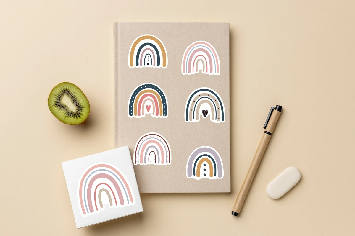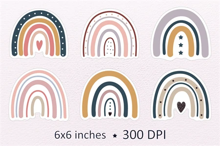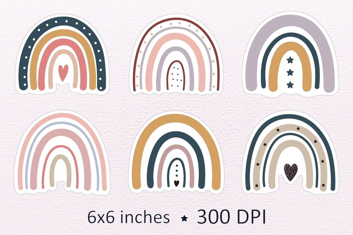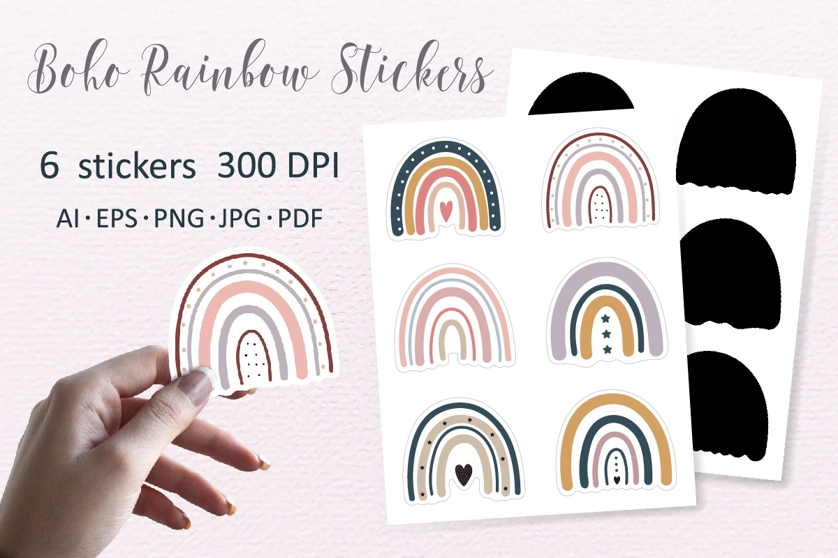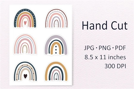 Rainbow boho stickers.Rainbow boho clipart.Rainbow boho Cricut Stickers.Rainbow boho Hand Cut Stickers.