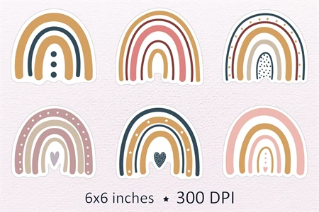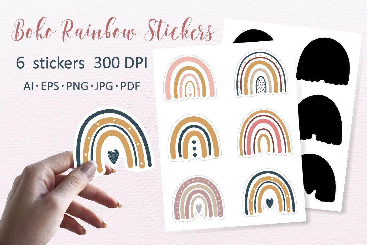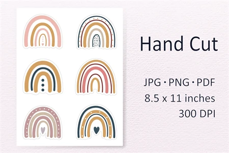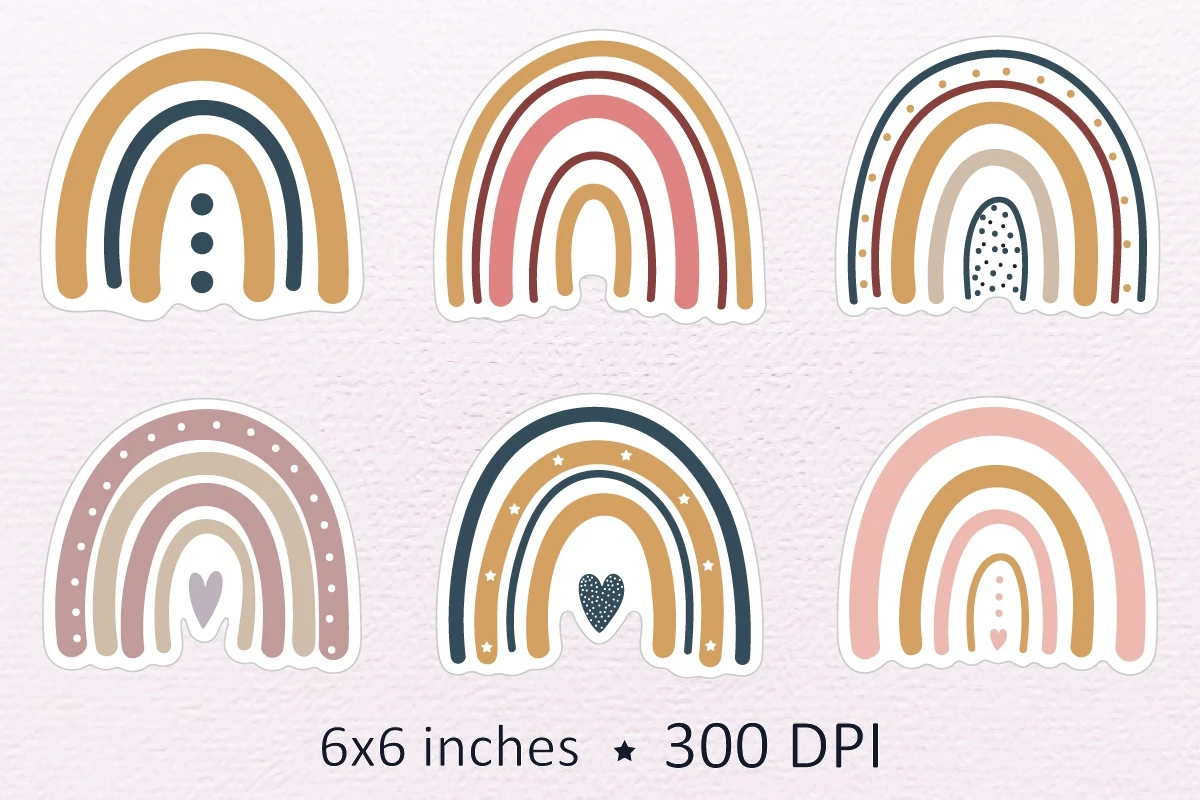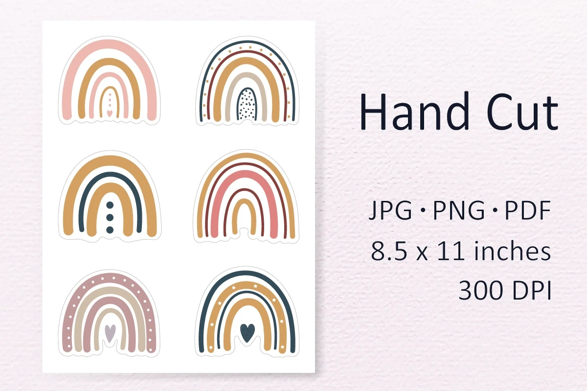 Rainbow boho stickers.Rainbow boho clipart.Rainbow boho Cricut Stickers.Rainbow boho Hand Cut Stickers.