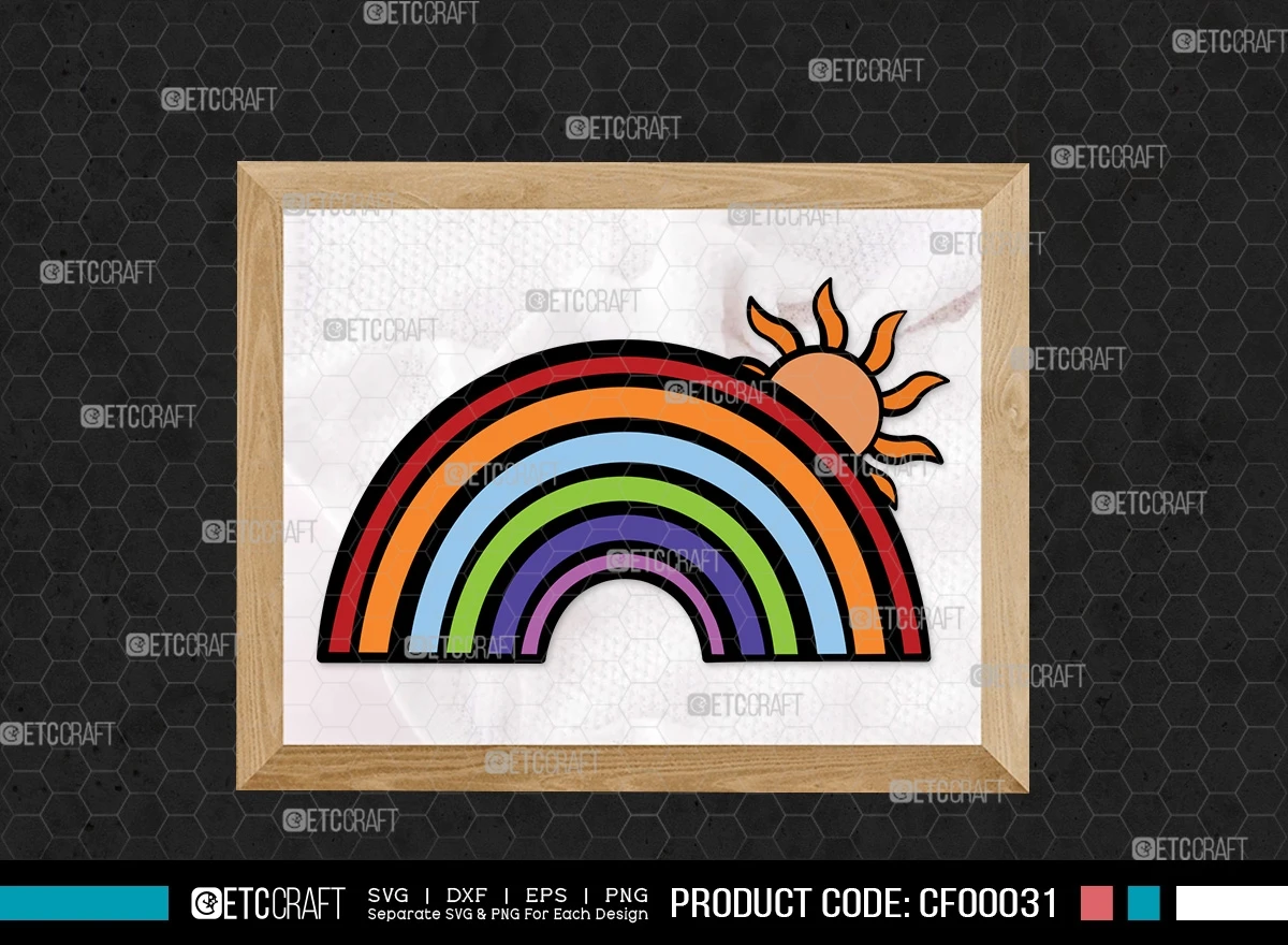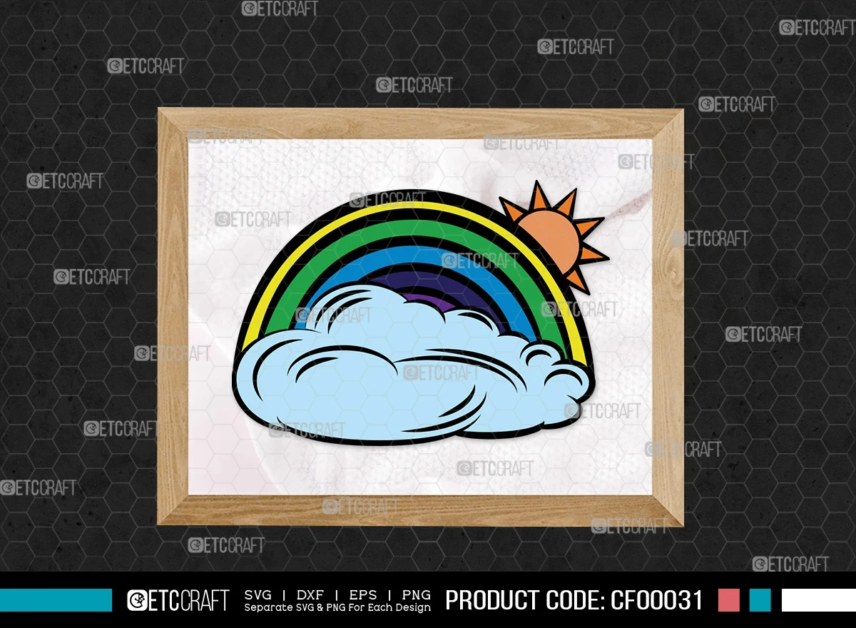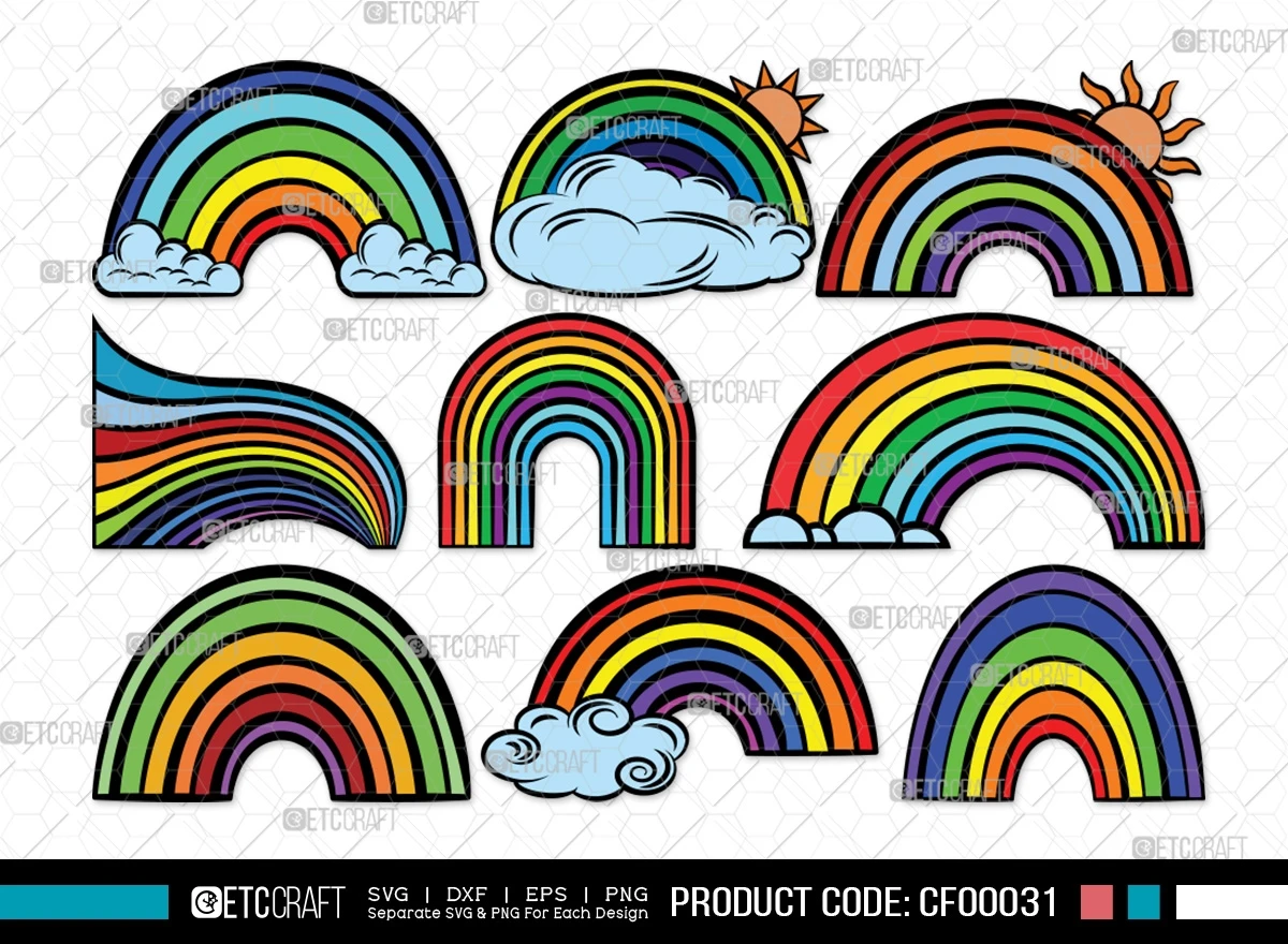 Elevate your creative projects with our exquisite Rainbow Clipart Layered Rainbow & Clouds Svg Cut File. This design effortlessly combines the beauty of rainbows and clouds, offering a versatile and delightful addition to your digital artwork.