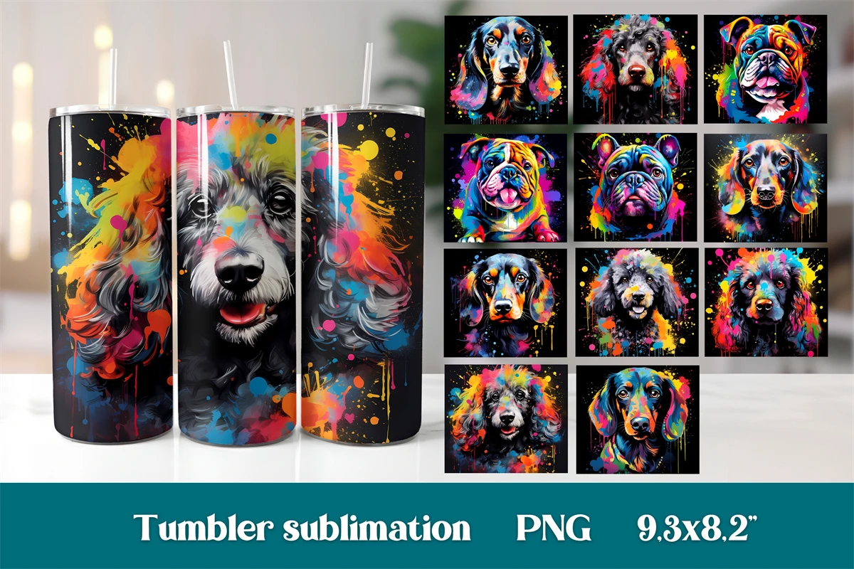 Rainbow dog tumbler bundle sublimation design wrap 20 Oz, animal tumbler bundle wrap design, rainbow dog sublimation.