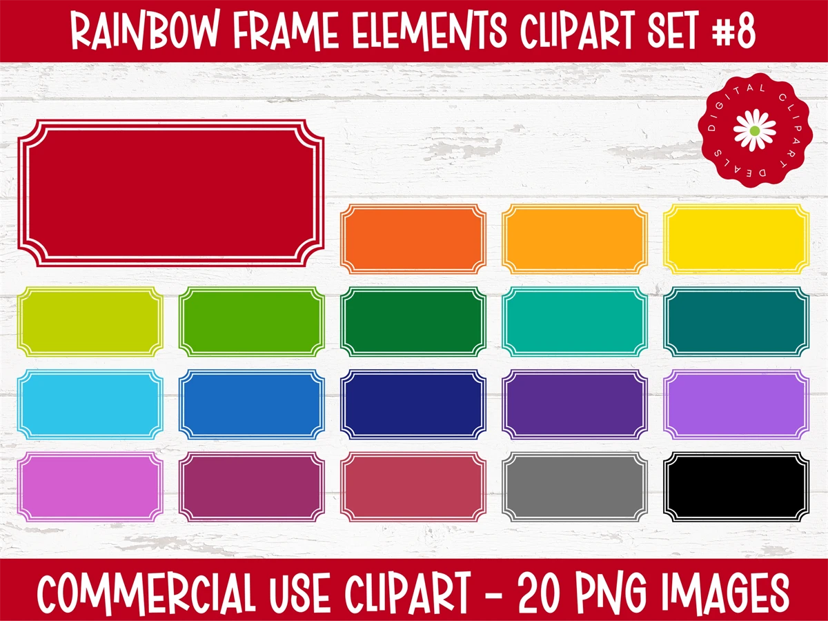 Rainbow Frames Set 8 Clipart Set - 20 PNGs