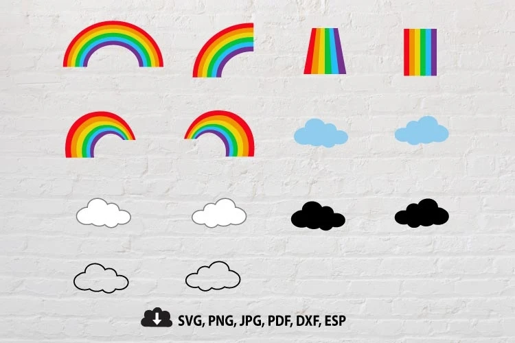 Rainbow Svg, Rainbow Cut File, Rainbow Clipart, Rainbow With Clouds, Rainbows and Clouds, Magic, Rainbow Silhouette, Cricut svg