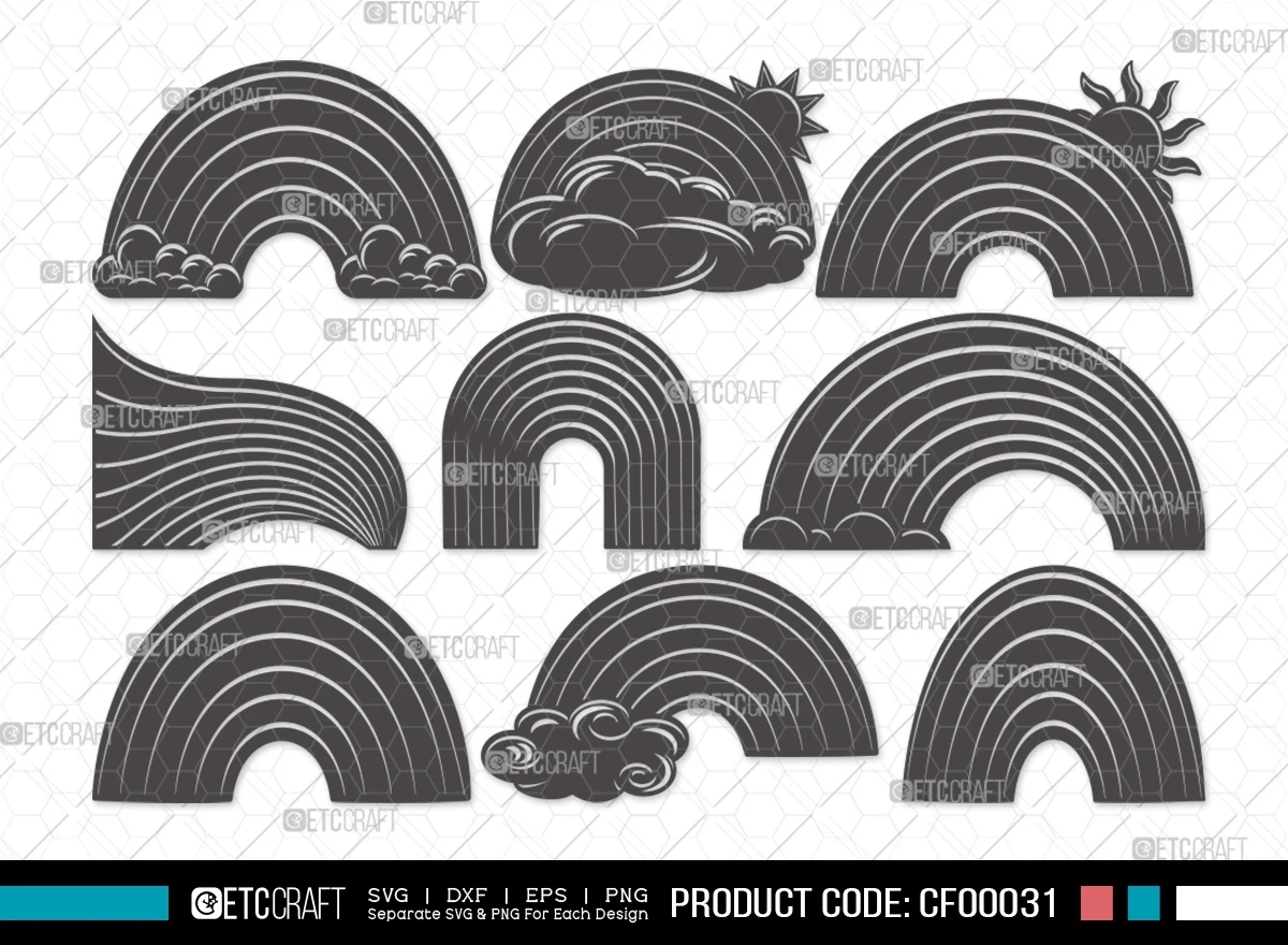 Immerse yourself in the magic of our Rainbow Silhouette Layered Rainbow & Clouds Svg Cut File – a digital wonder designed to elevate your creative endeavors and add a touch of enchantment to your projects.