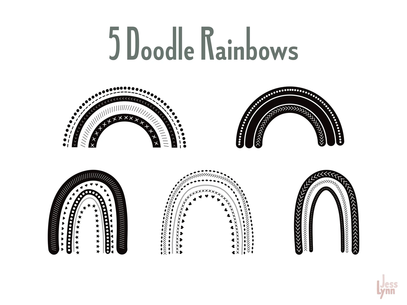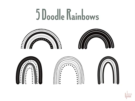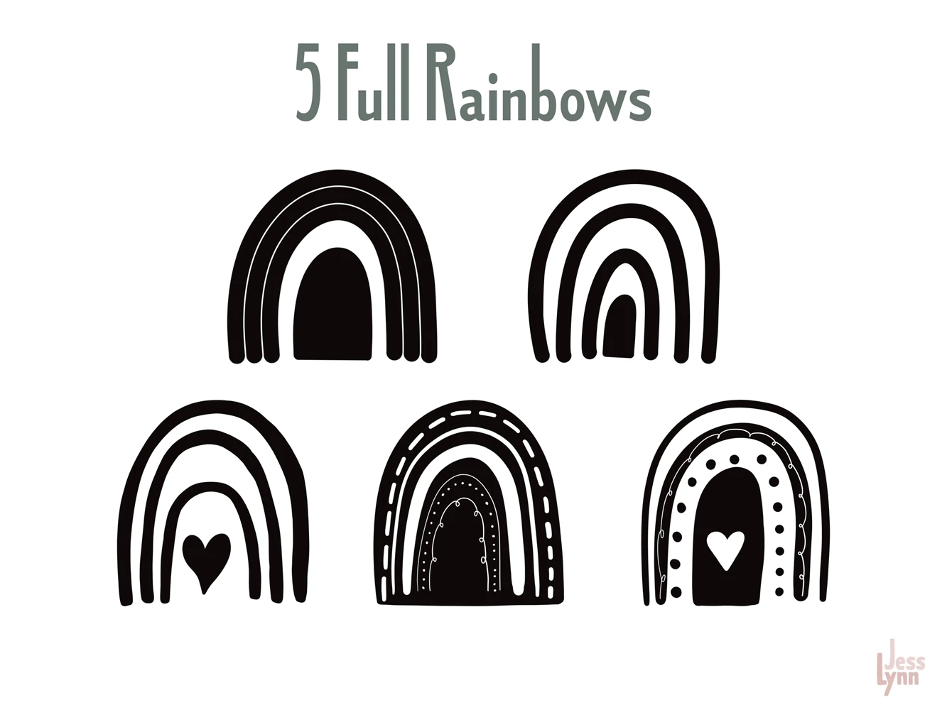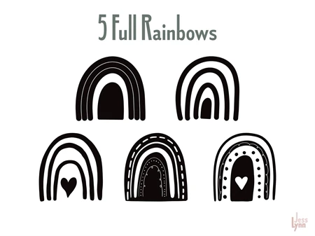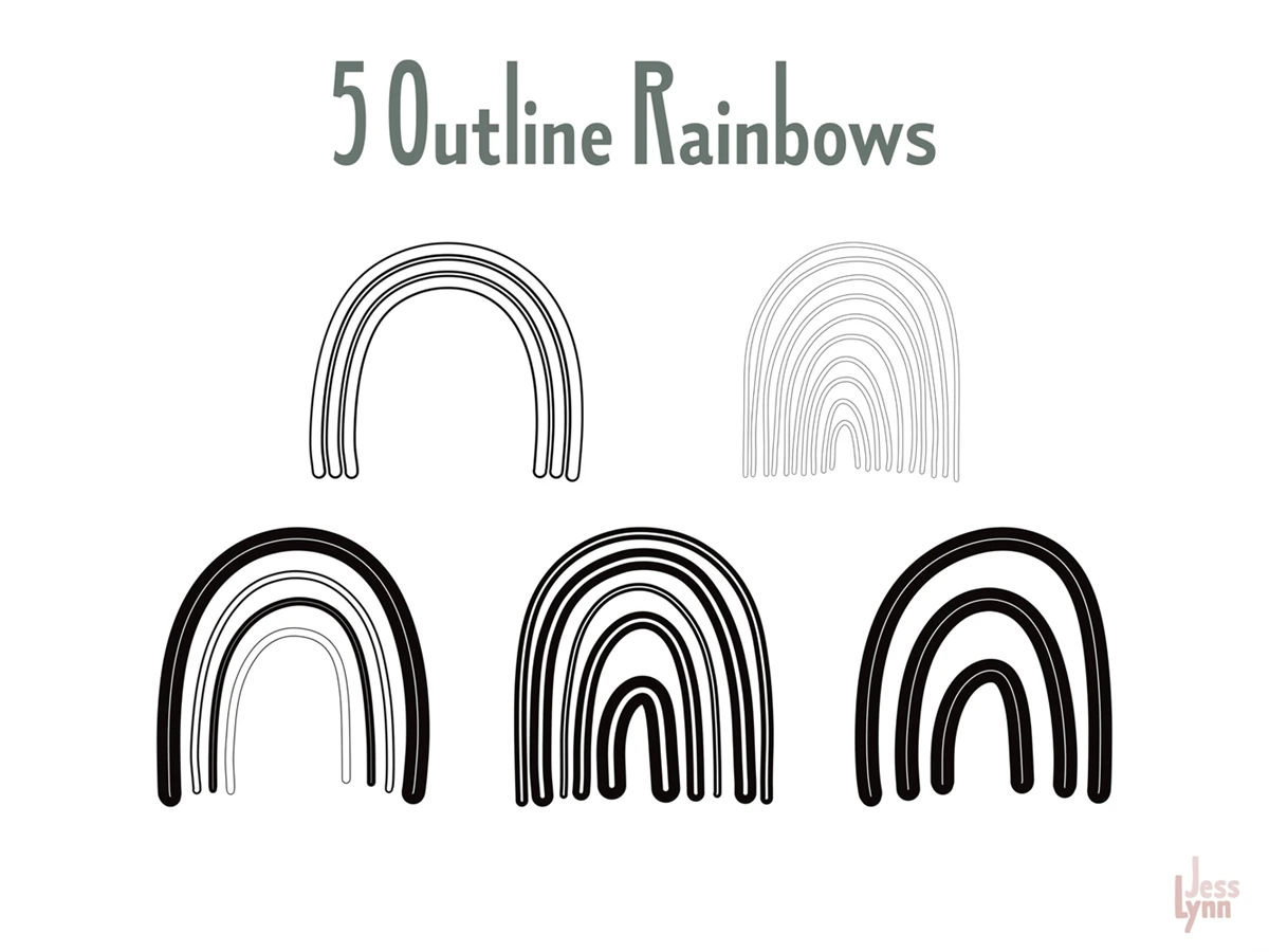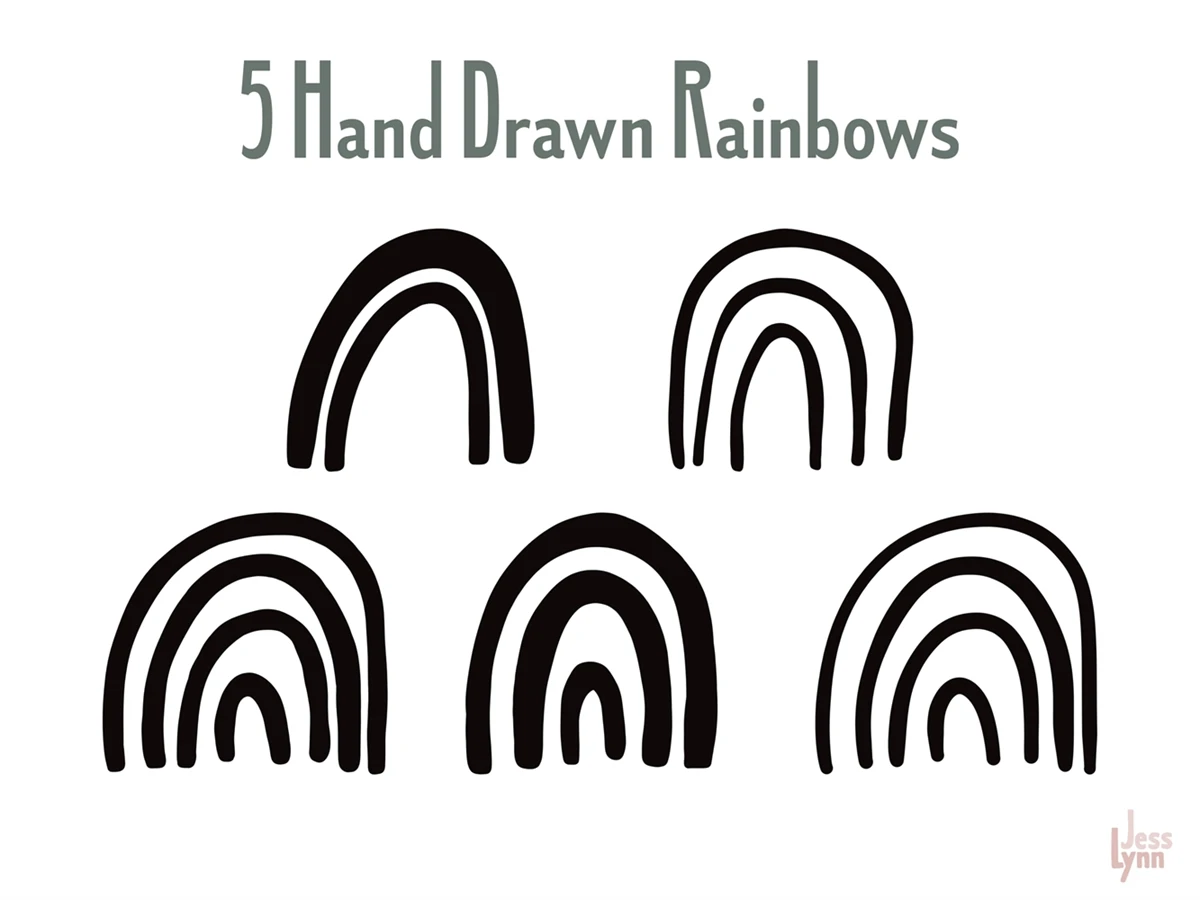 This Procreate brush set contains 30 original hand-drawn rainbow stamp brushes, and a special bonus dotted rainbow brush!