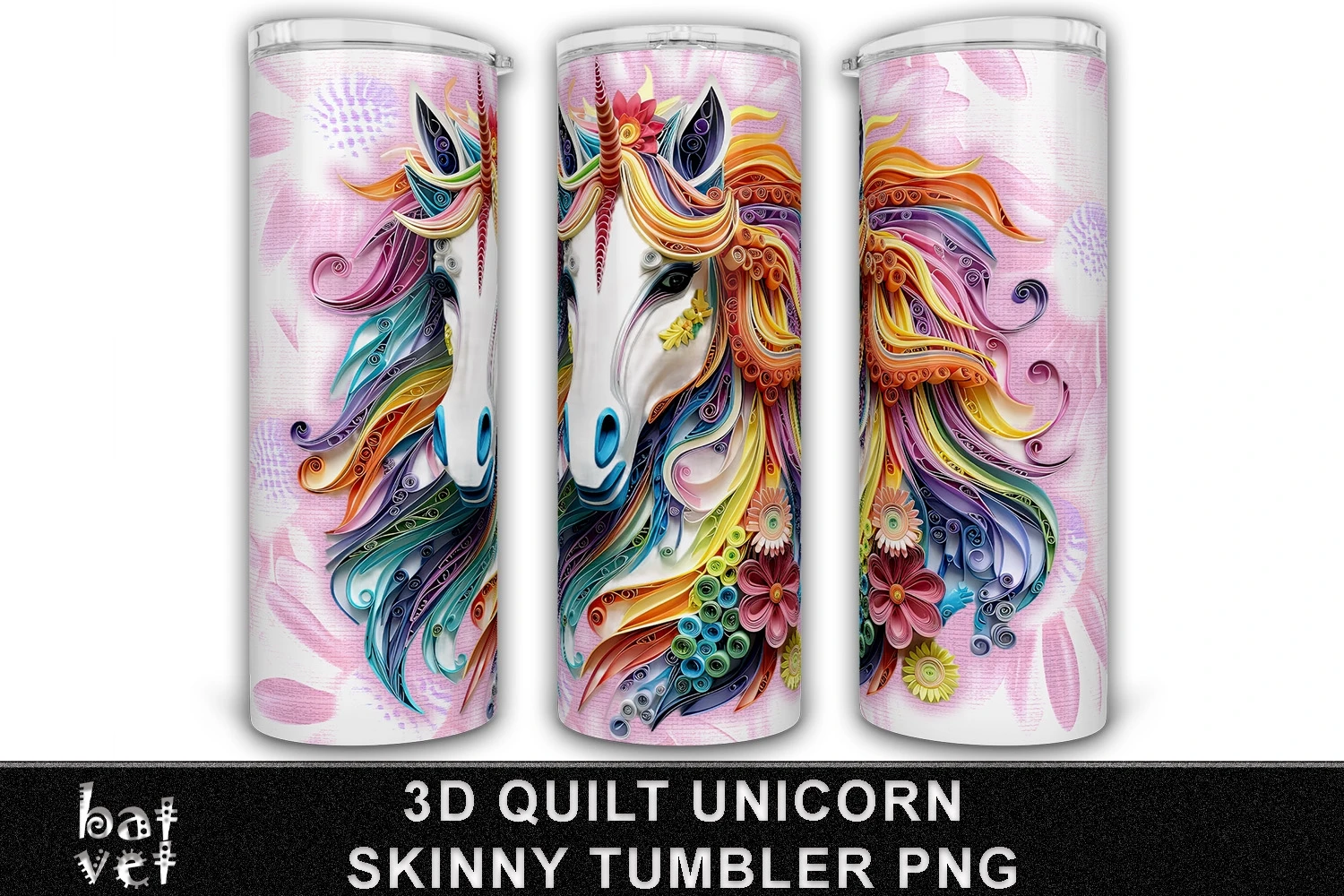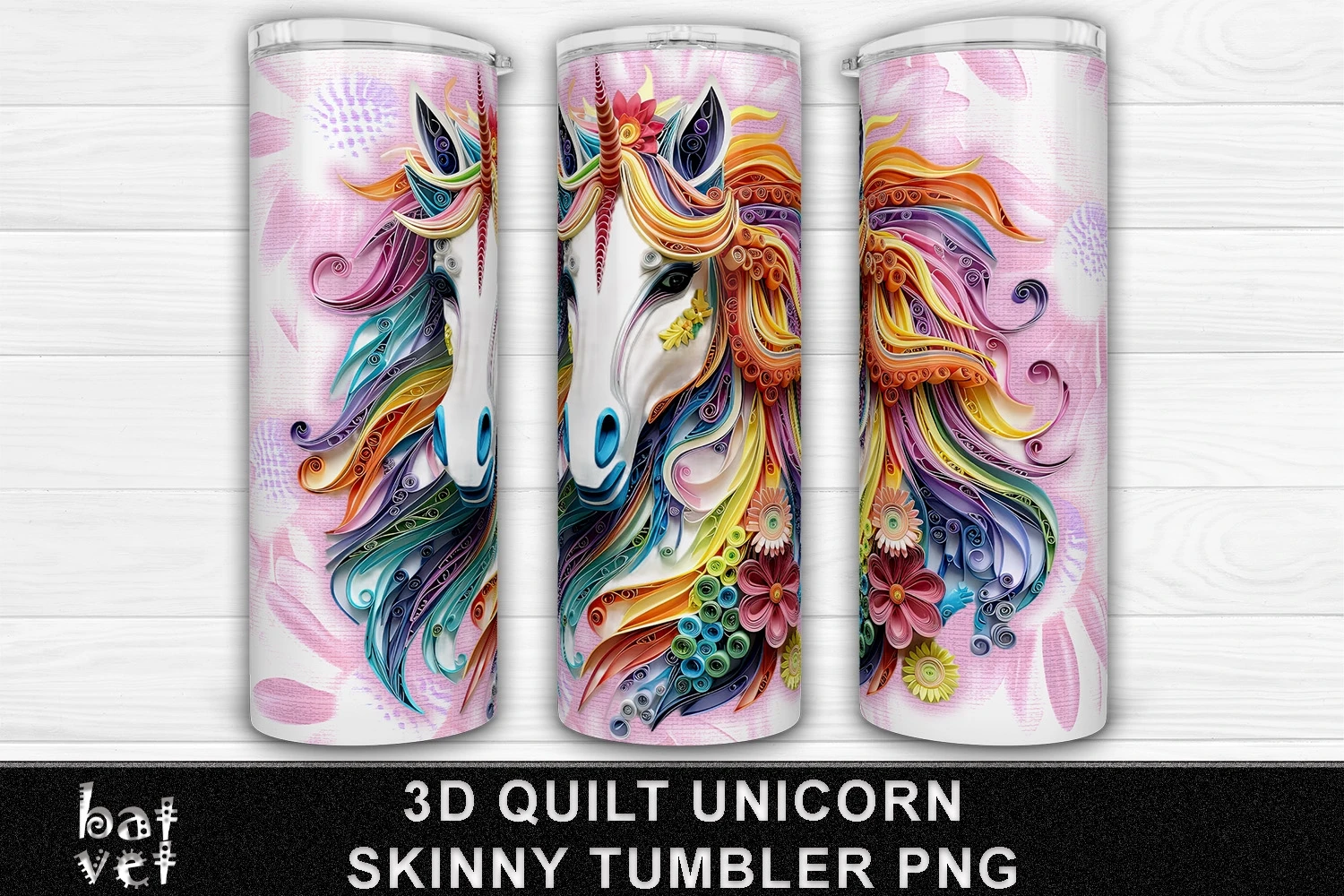3D Quilt 20 Oz Tumbler, Floral Rainbow Unicorn Sublimation Wrap.