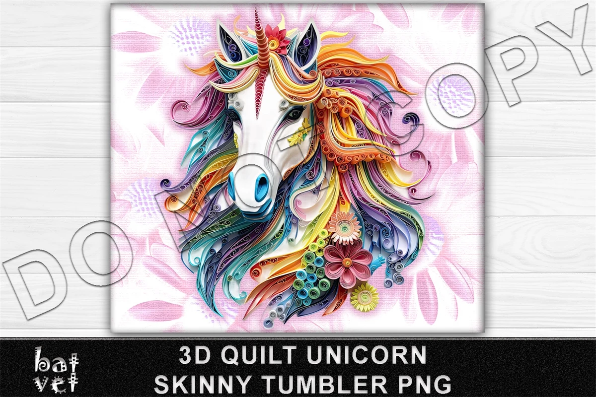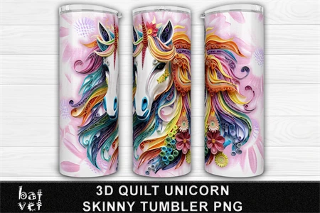 Rainbow Unicorn Quilt Tumbler PNG / 3D Unicorn Sublimation