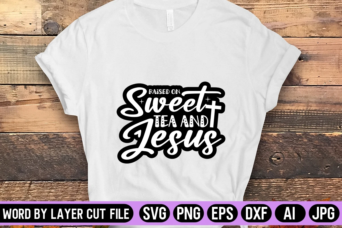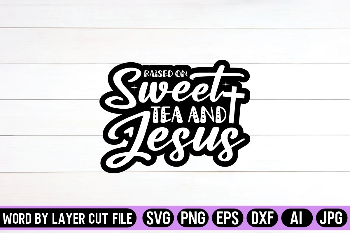 Raised On Sweet Tea And Jesus Sticker SVG Design