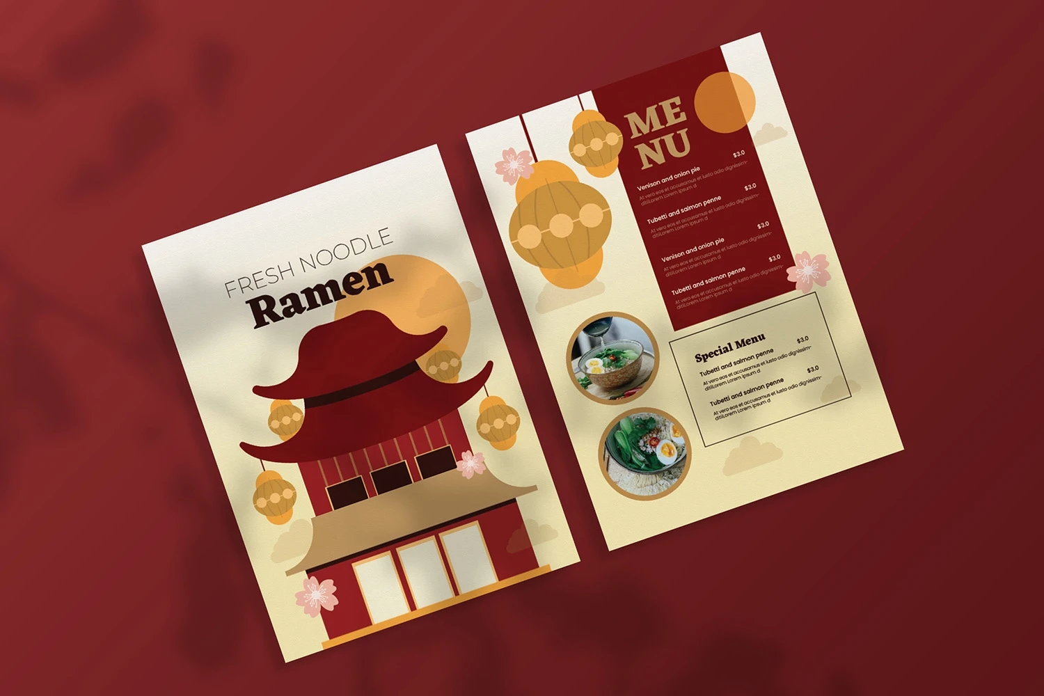 **Ramen Noodle - Food Menu**. This template is excellent for your business and will make your customers interested, elegant, and easily editable according to your needs, this restaurant menu is perfect for, promos, cafes, hotels, and resort shops online. etc. I hope you enjoy this restaurant's menu