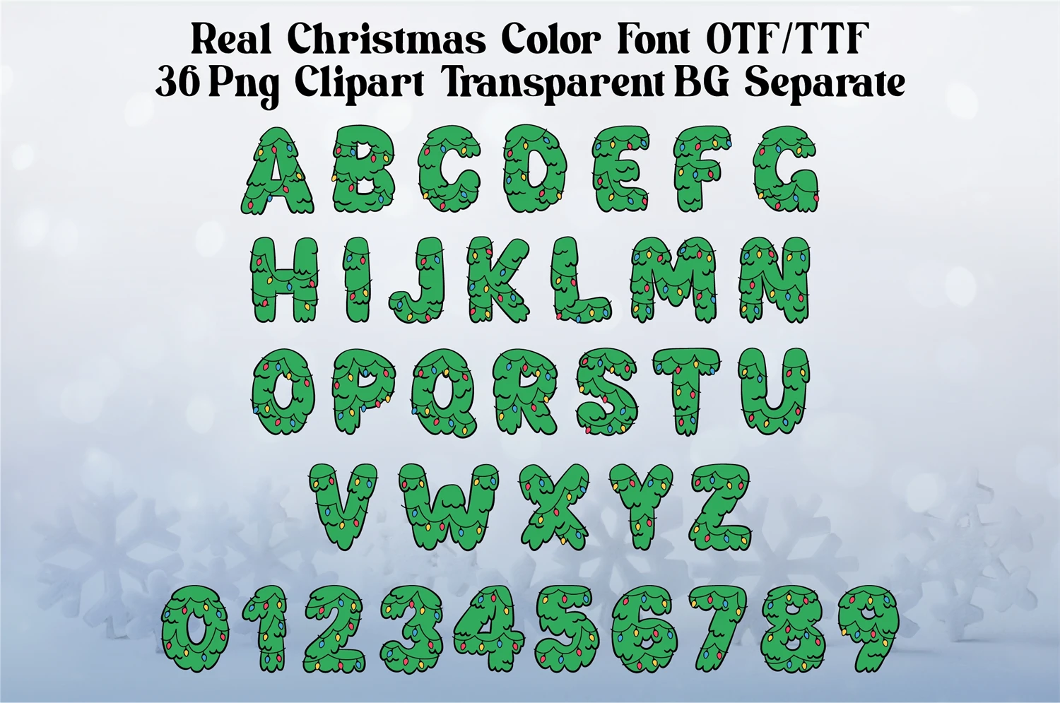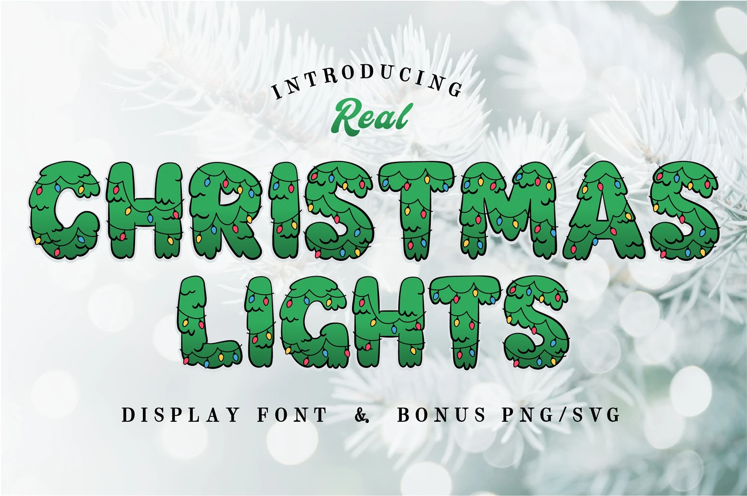 Real Christmas Lights Font Christmas Tree Docor Font & Bonus