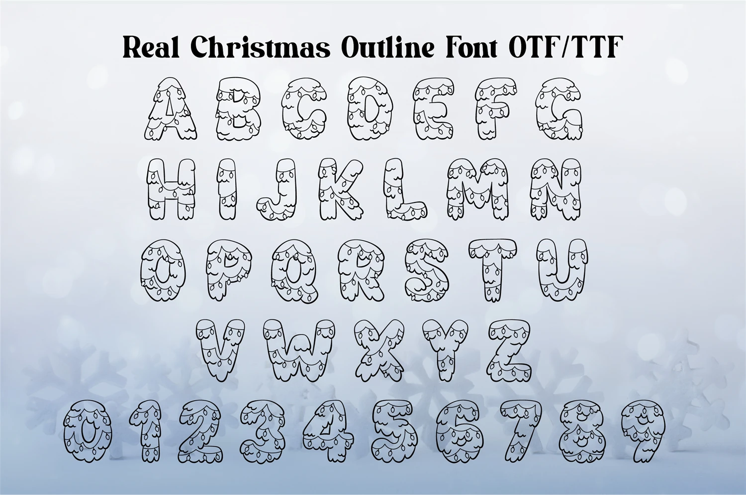 Real Christmas Lights is really festive display font. You can create many unique quote and decorate theme with one font. Comes with outline and color version. Perfect for Christmas fun project, shirt design, mug etc.