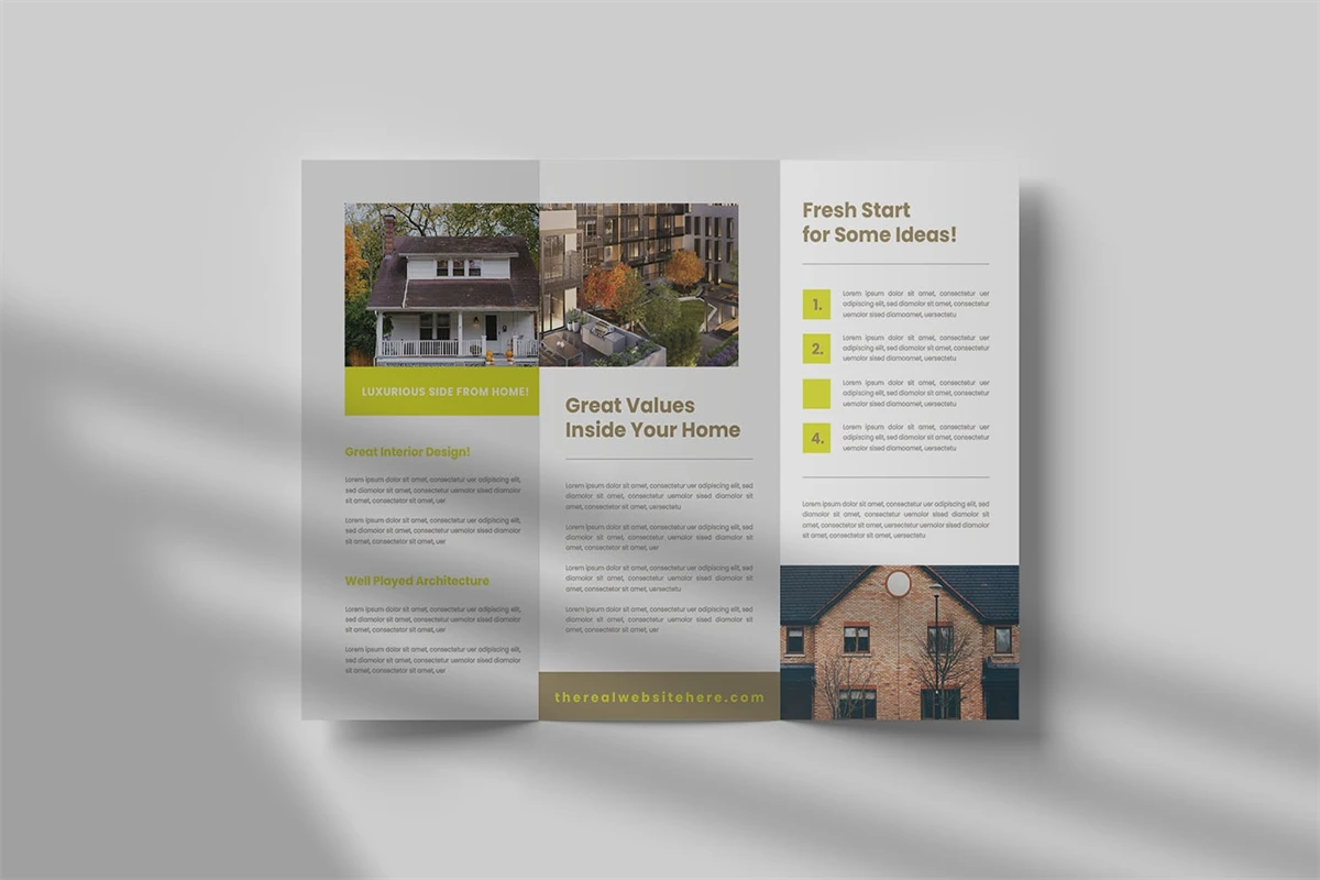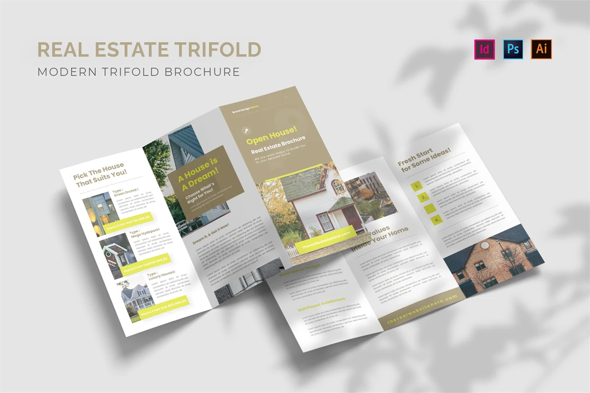 Real Estate - Trifold Brochure We present this Trifold Brochure for you, simple, very elegant and professional and this Trifold Brochure is suitable for all types of your business,company or corporate, made with Adobe InDesign (INDD), Adobe Photoshop (PSD) and Adobe Illustrator (AI), very easy to customize, Hope you Like it dont forget to rate, Thanks You.
