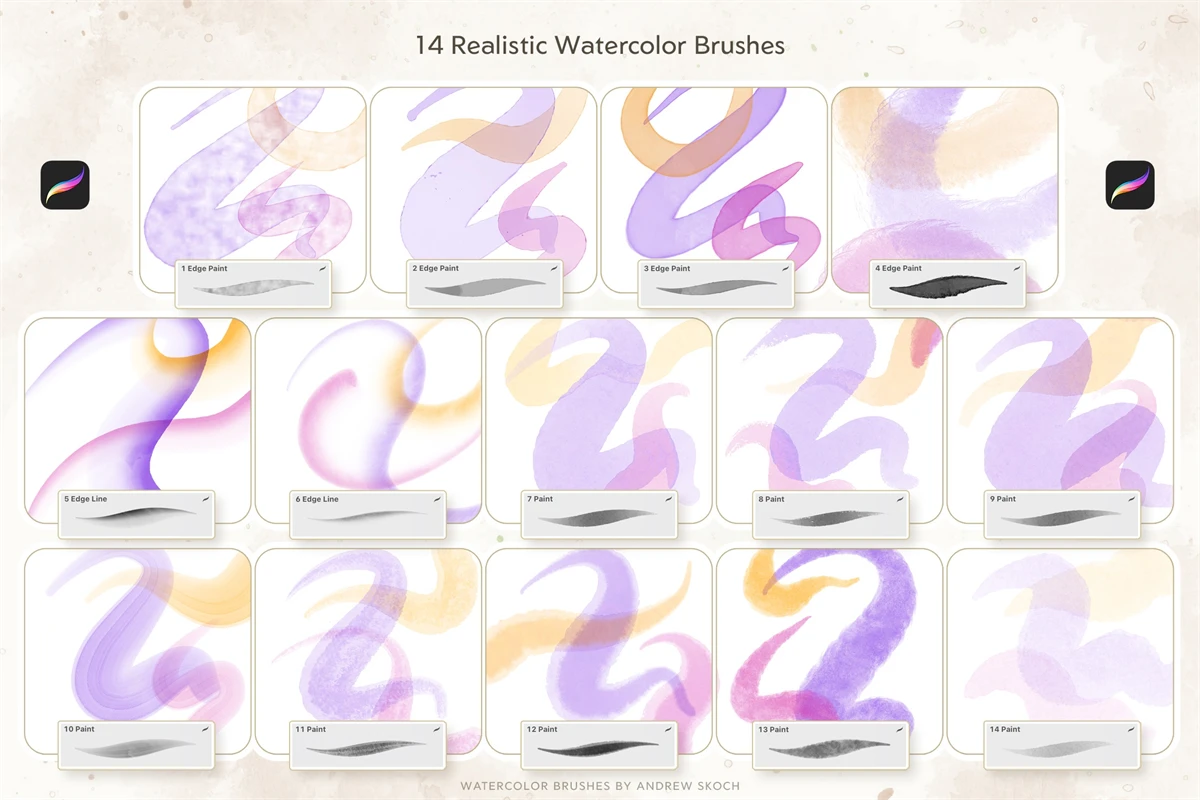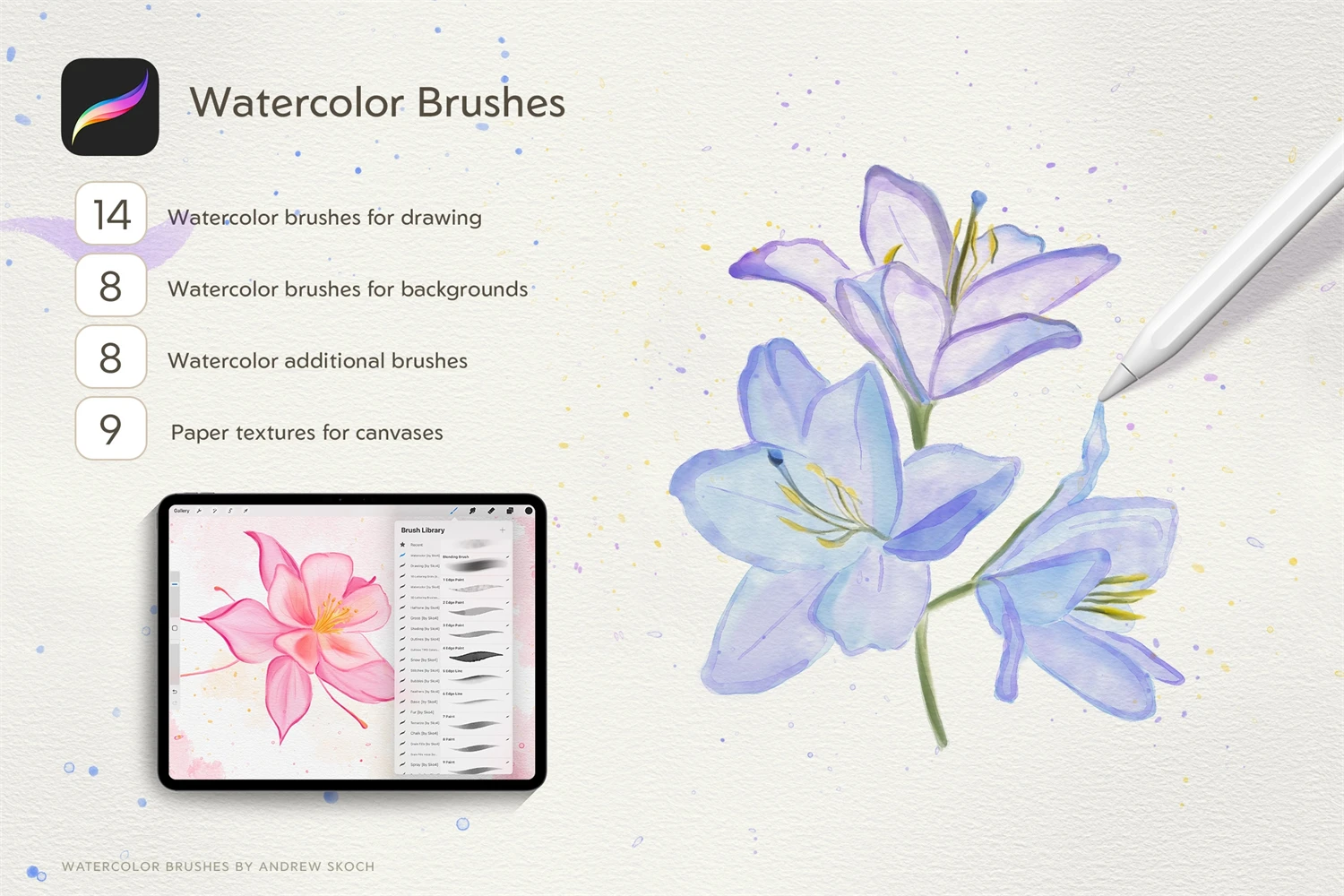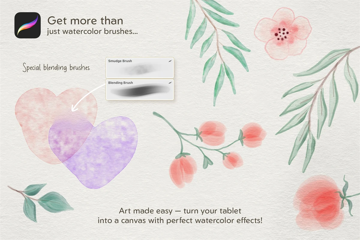 Unlock the beauty of watercolor painting on your iPad with this comprehensive Watercolor Procreate Brushes set. Designed to give you the feel of real aquarelle, our brushes bring the fluidity, texture, and vibrance of traditional watercolors right to your digital canvas. Whether you're working on delicate details, broad strokes, or textured backgrounds, this set includes everything you need to draw your watercolor masterpieces.