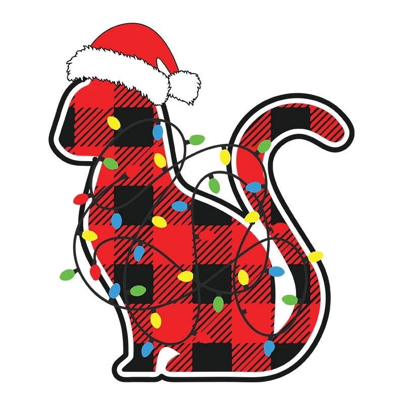 Red Buffalo Plaid Cat Christmas Svg, Cat Christmas Svg