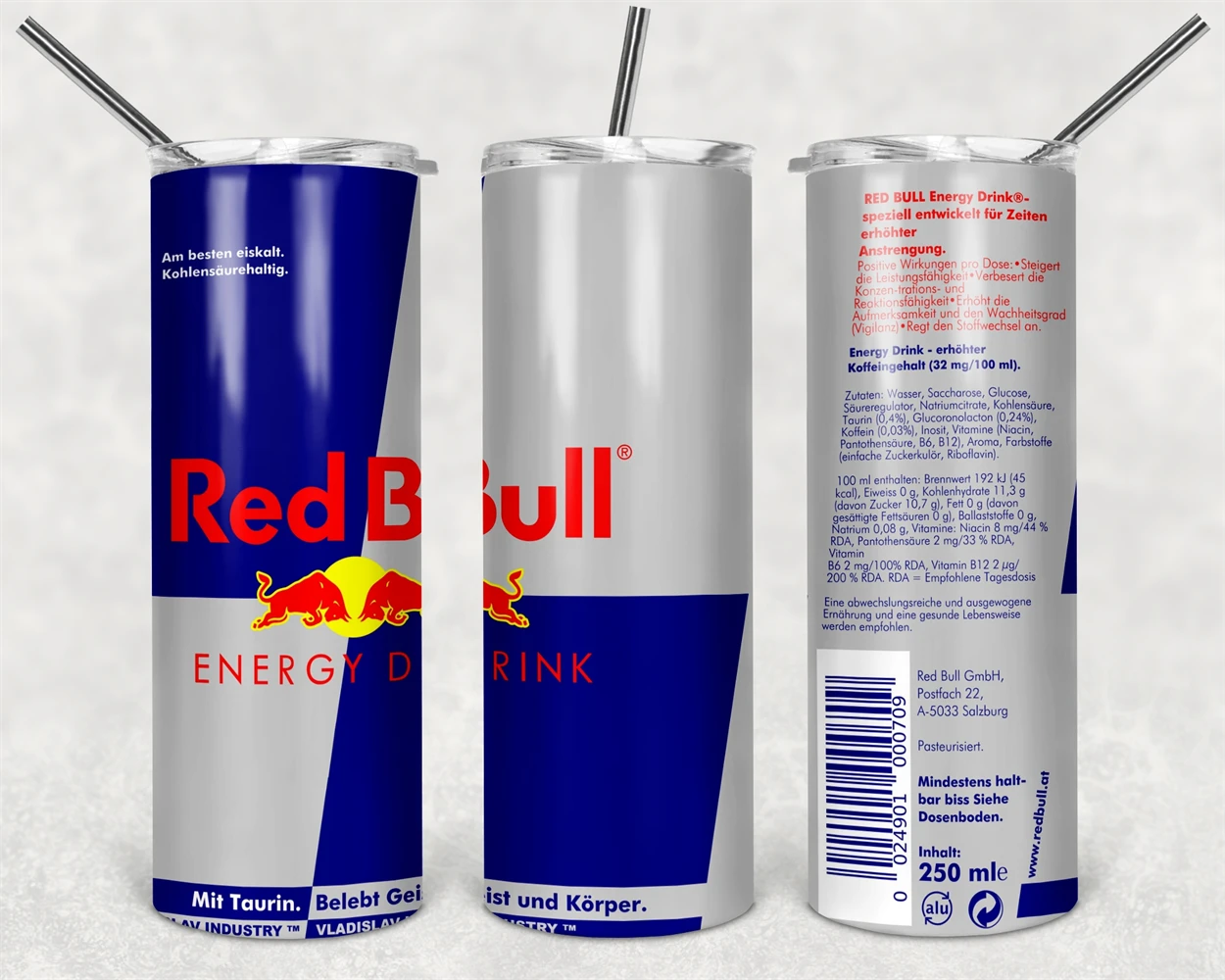 Red Bull Energy Drink Tumbler Png, 20oz & 30oz Skinny