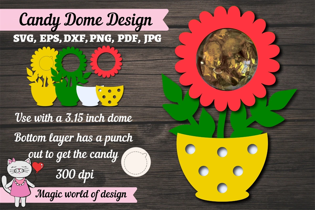 Red flower Candy Dome Holder Svg, 3d svg cut file