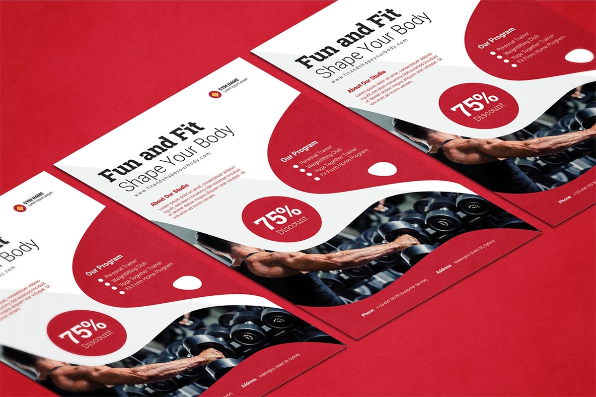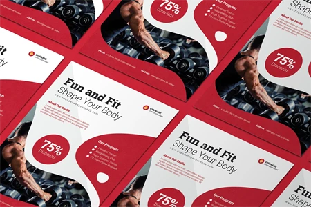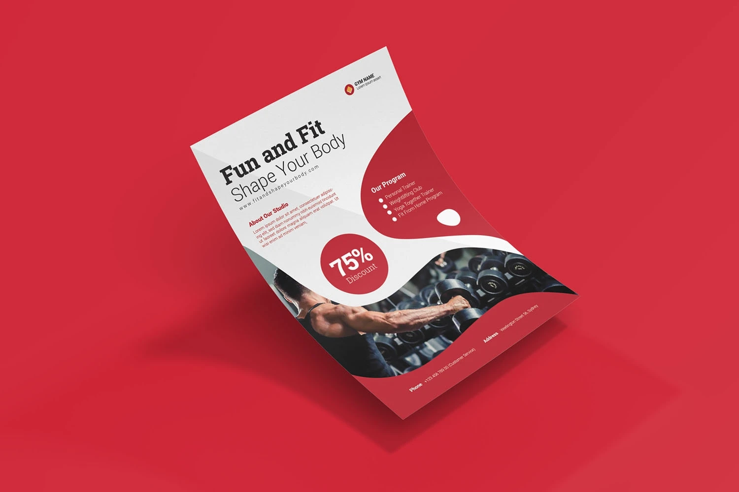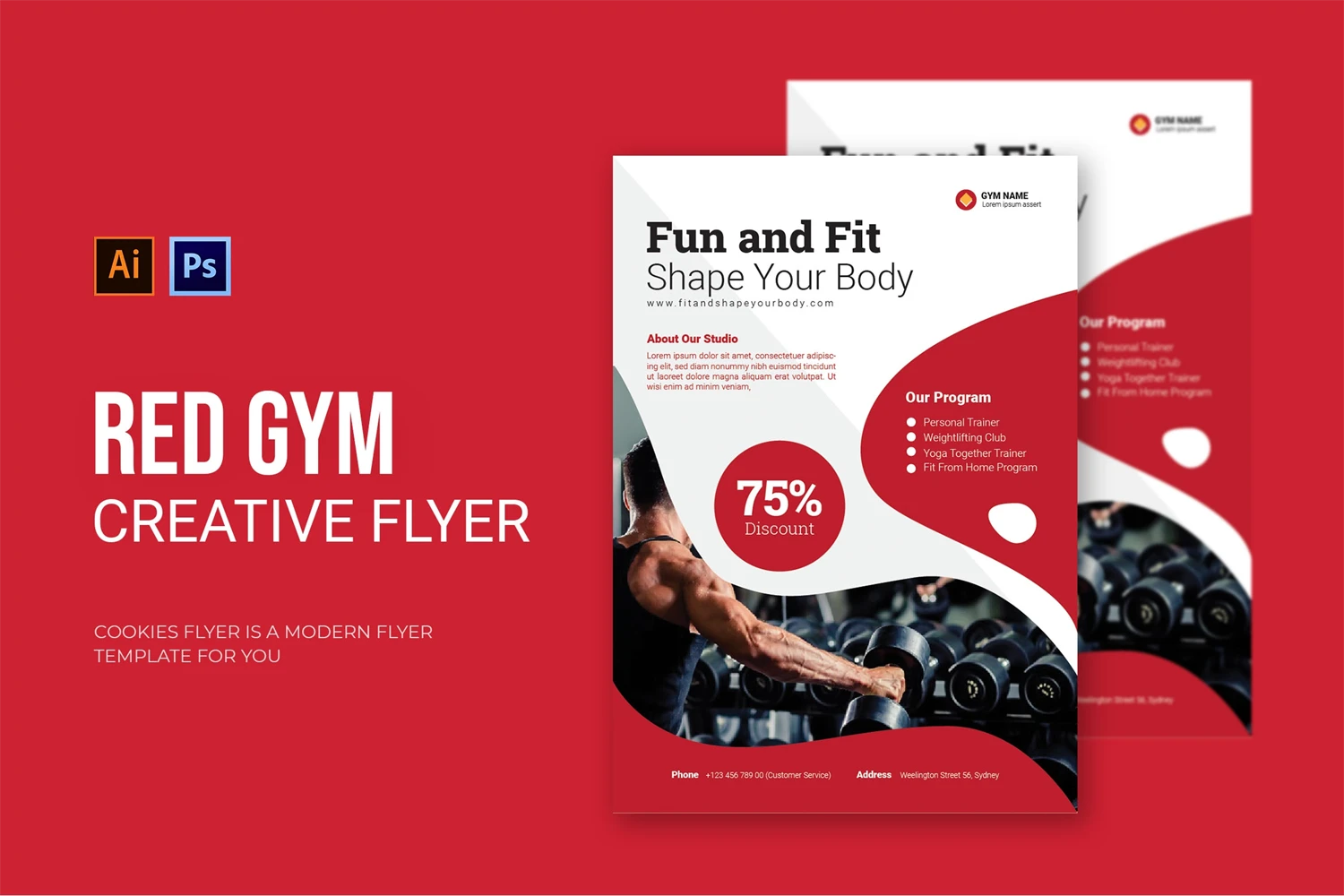 Red Gym - Flyer. This Flyer template is designed for your company's business needs. very clean and elegant, and also easily edited and adjusted to your liking