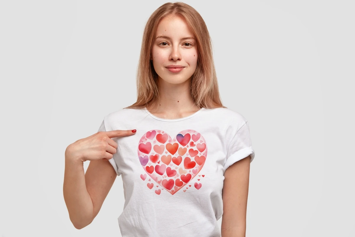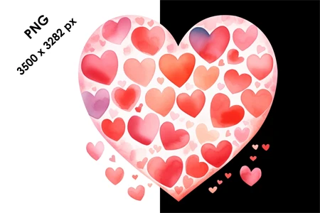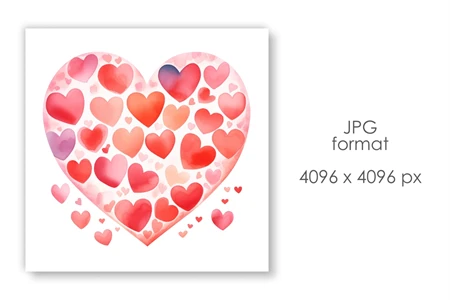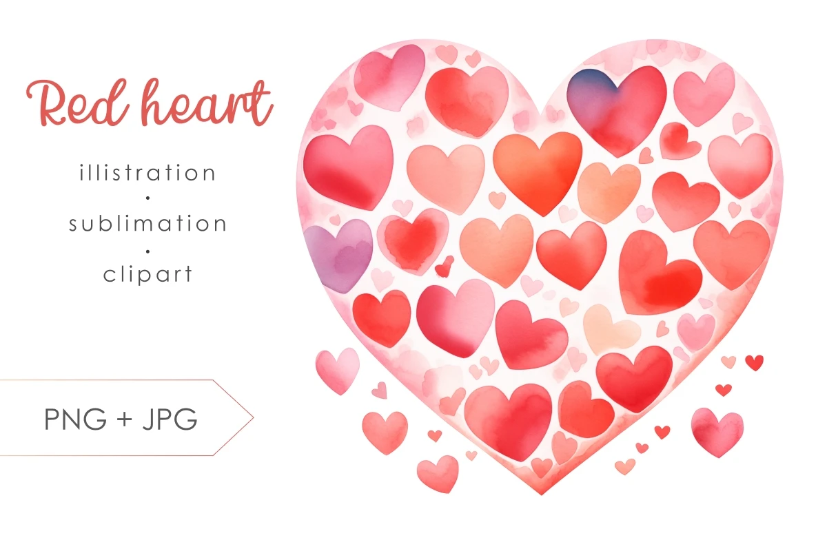 Bright watercolor illustration of a heart made of hearts. Single element in red and pink colors, clipart, sublimation, print for clothes, dishes, posters. Creation of patterns, digital paper, children's stickers. A beautiful element for children's design, on the holiday theme of Valentine's Day, wedding, birthday, engagement, anniversary.