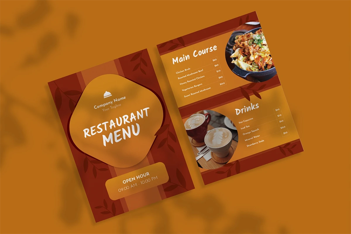 Red Leaf - Restaurant Menu. This template is great for your business and will make your customers interested, elegant, and easily editable according to your needs, this restaurant menu is perfect for, promos, cafes, hotels, resort shops online. etc. I hope you enjoy this restaurant menu