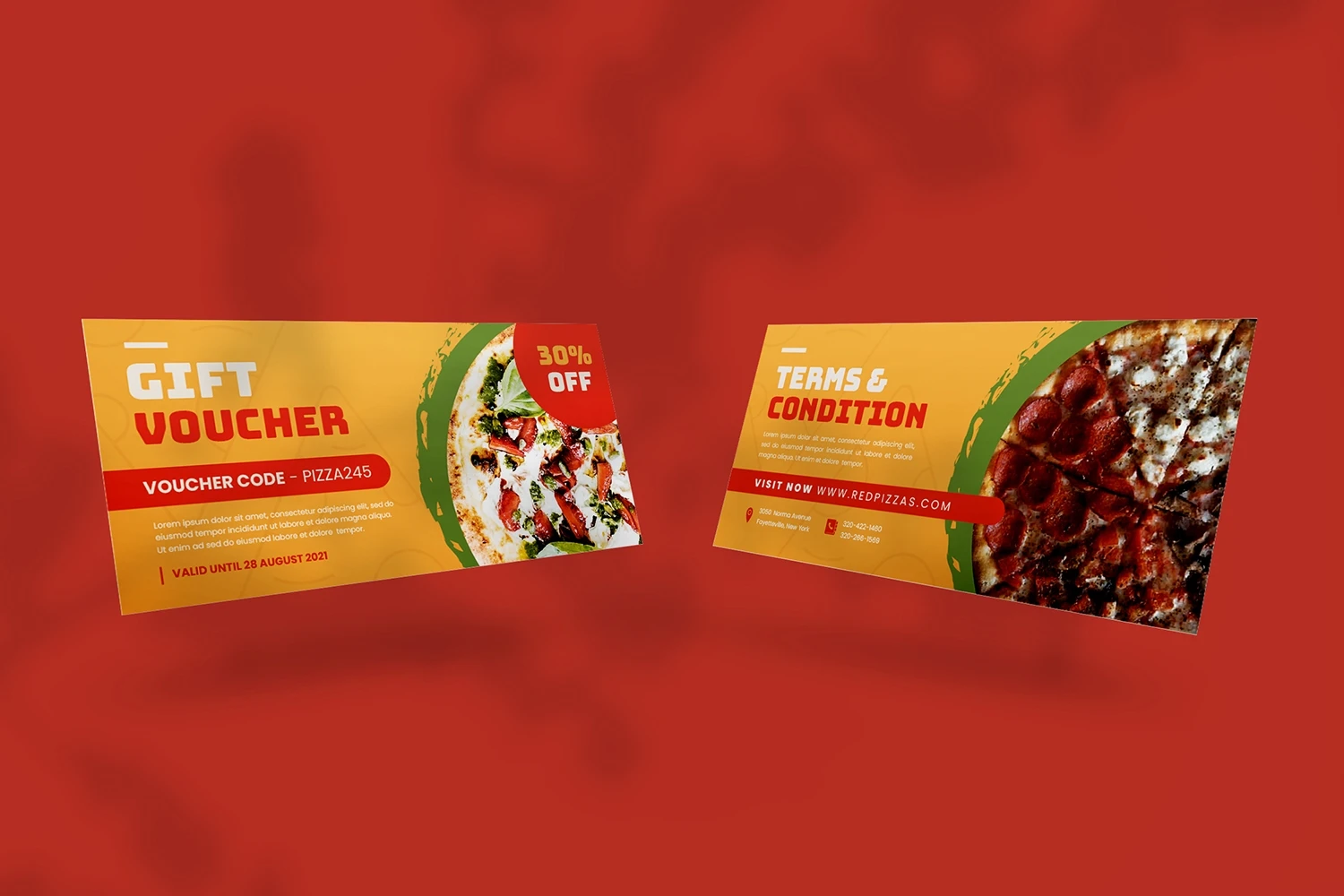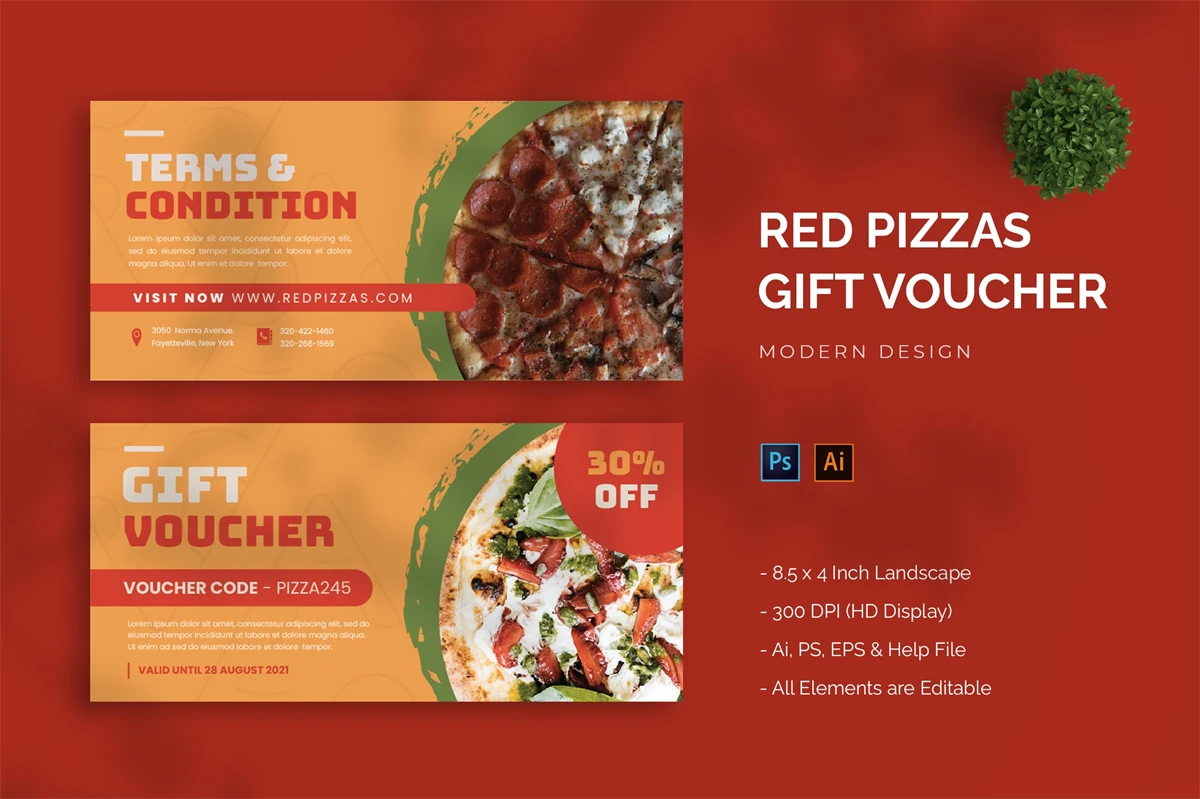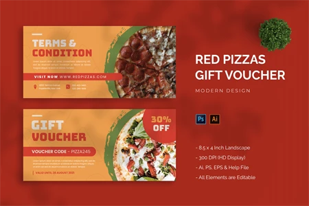 This is a Red Pizzas - Gift Voucher Get it now and don't miss it!, a Gift Voucher for all your business and personal needs. Great for your business and this design will keep you interested, elegant, and easy to edit according to your needs (** Adobe Illustrator, Adobe Photoshop **). You can use this Gift Voucher for your business, event or other publishing like marketing promotions and company profile, and you can also use this gift voucher to your clients and family, I hope you enjoy this, Hope you like it don't forget to rate, Thanks.
