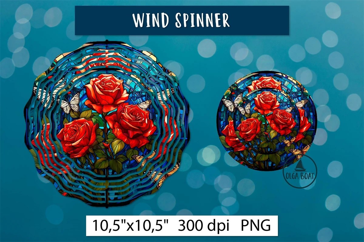 Butterfly with red roses wind spinner for print or Wind Spinner Sublimation application.