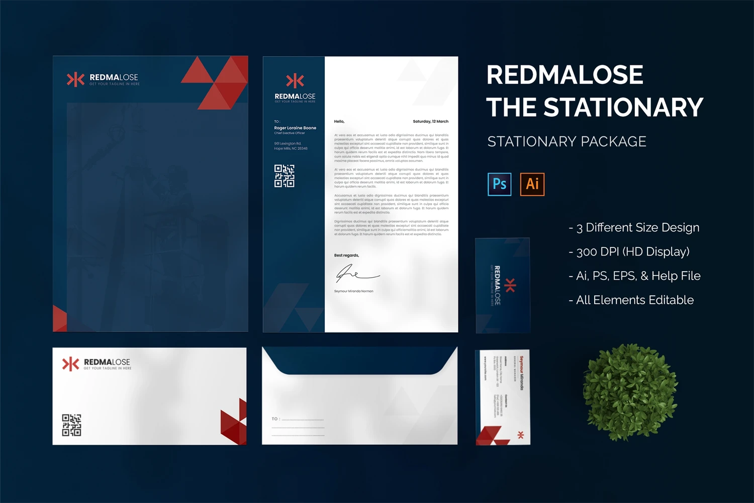 Redmalose - Stationary. This template is great for your business and this design will make your interested, elegant, and easily editable according to your needs. I hope you enjoy for this stationary.