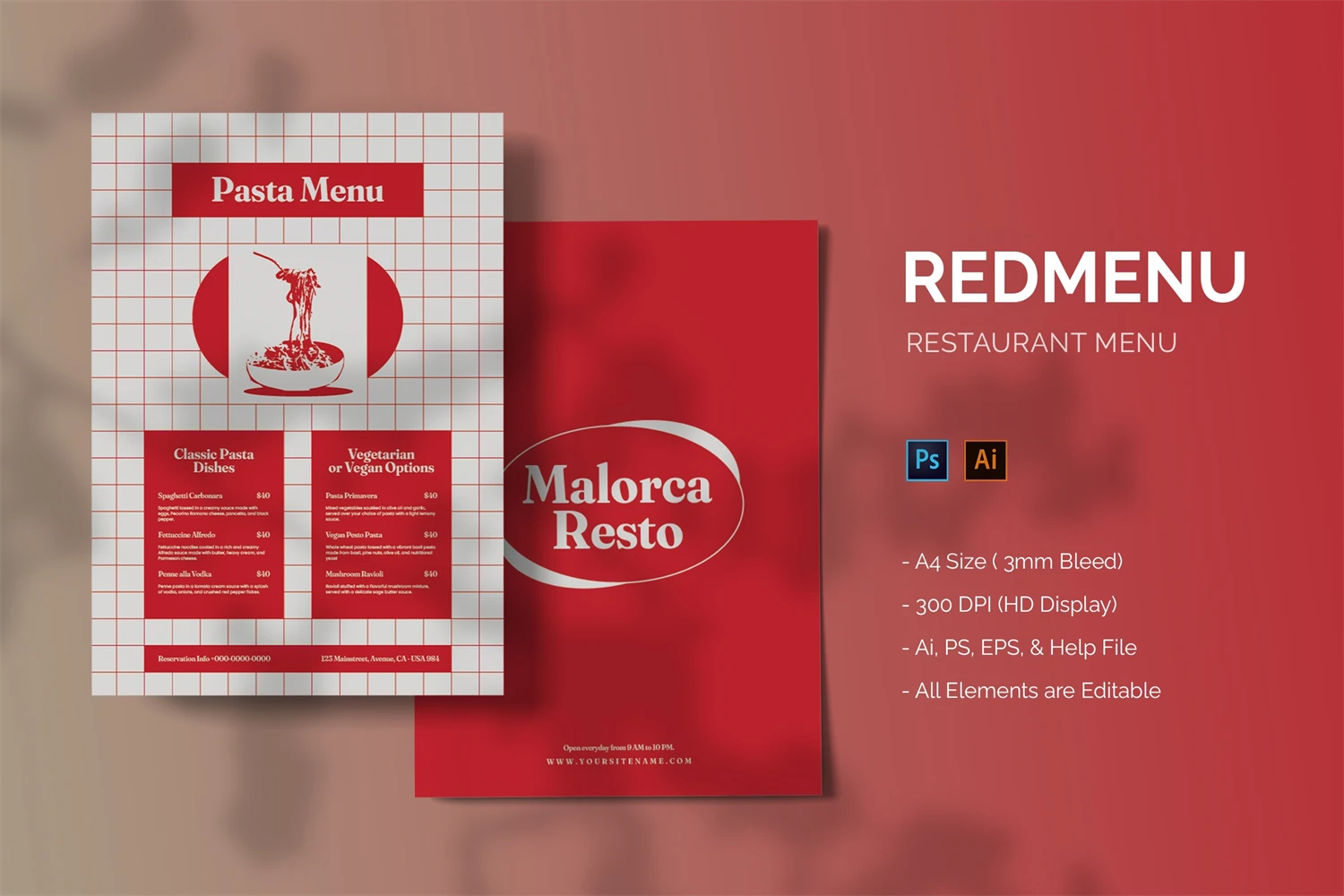 **Redmenu - Restaurant Menu**. This template is excellent for your business and will make your customers interested, elegant, and easily editable according to your needs, this restaurant menu is perfect for, promos, cafes, hotels, and resort shops online. etc. I hope you enjoy this restaurant's menu