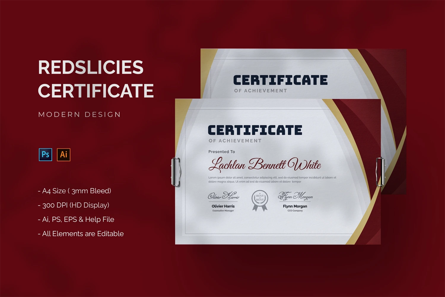 This is Redslicies - Certificate Get it now!, This very professional, easy to edit, can be customized to your needs,(Adobe Illustrator,Adobe Photoshop). You can use this certificate for awards, seminars, training, tournaments, I hope you enjoy for this, Hope you Like it dont forget to rate, Thanks.