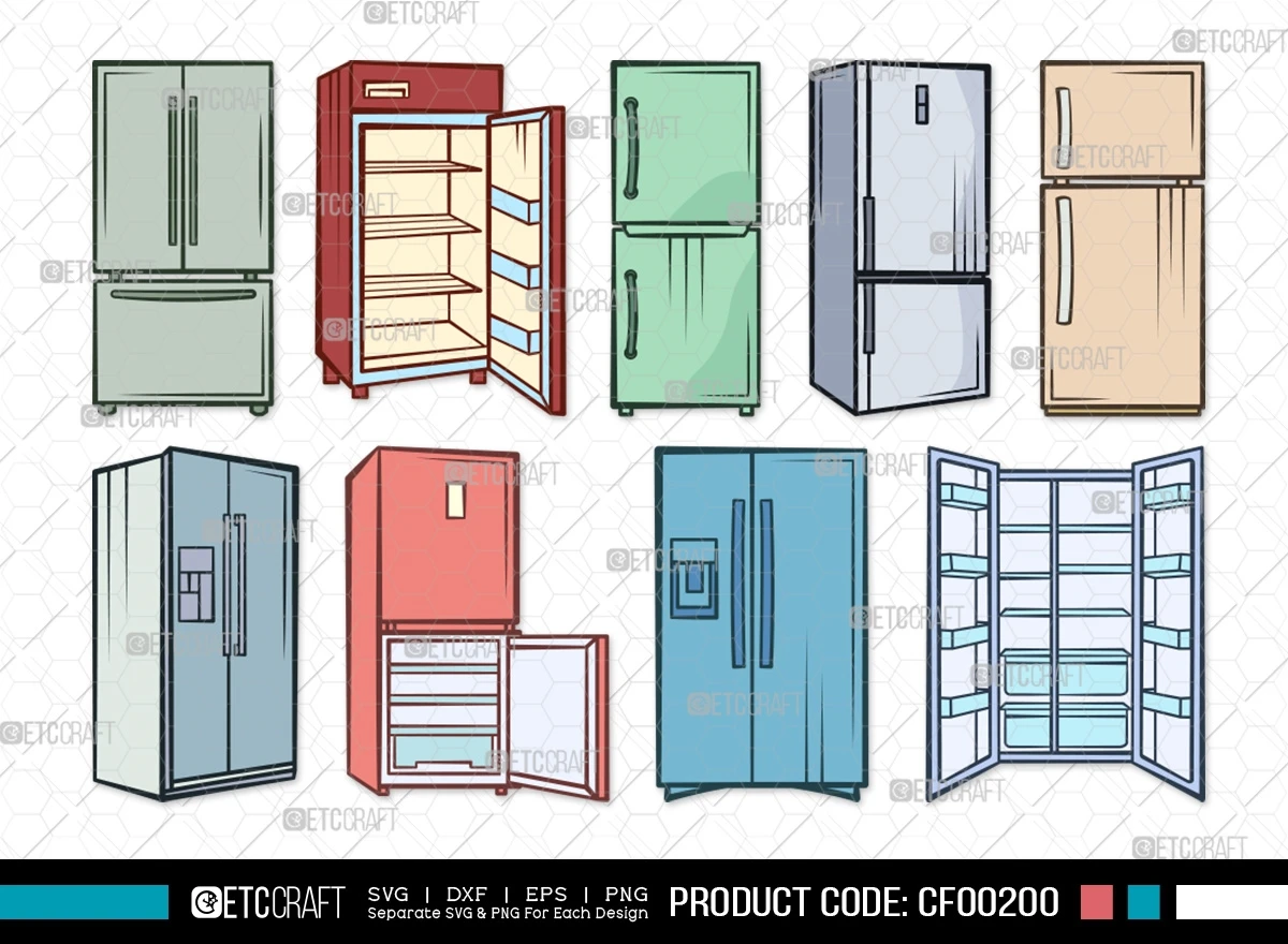 Enhance your creative projects with our Refrigerator Clipart Retro Fridge Stencil Freezer Icon SVG Cut File Bundle. Experience a dash of vintage charm and functional versatility with these delightful refrigerator-inspired designs.