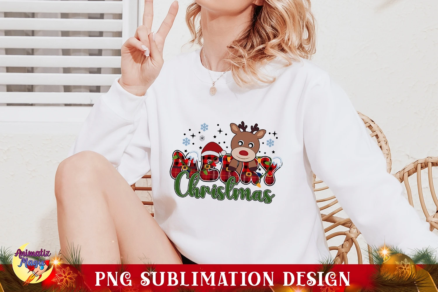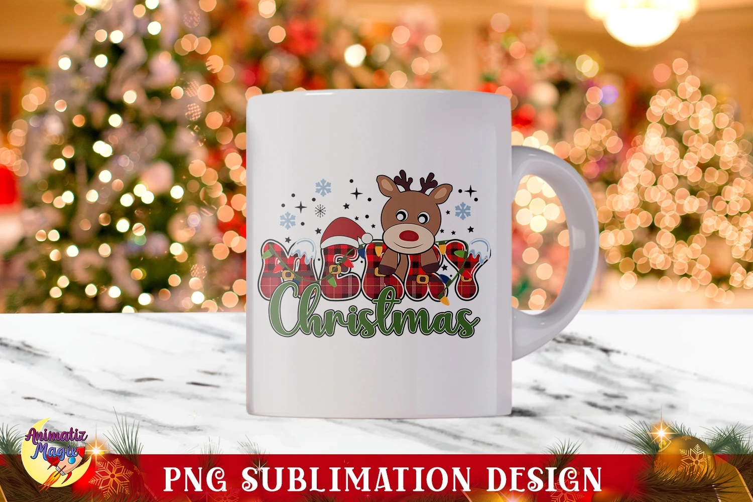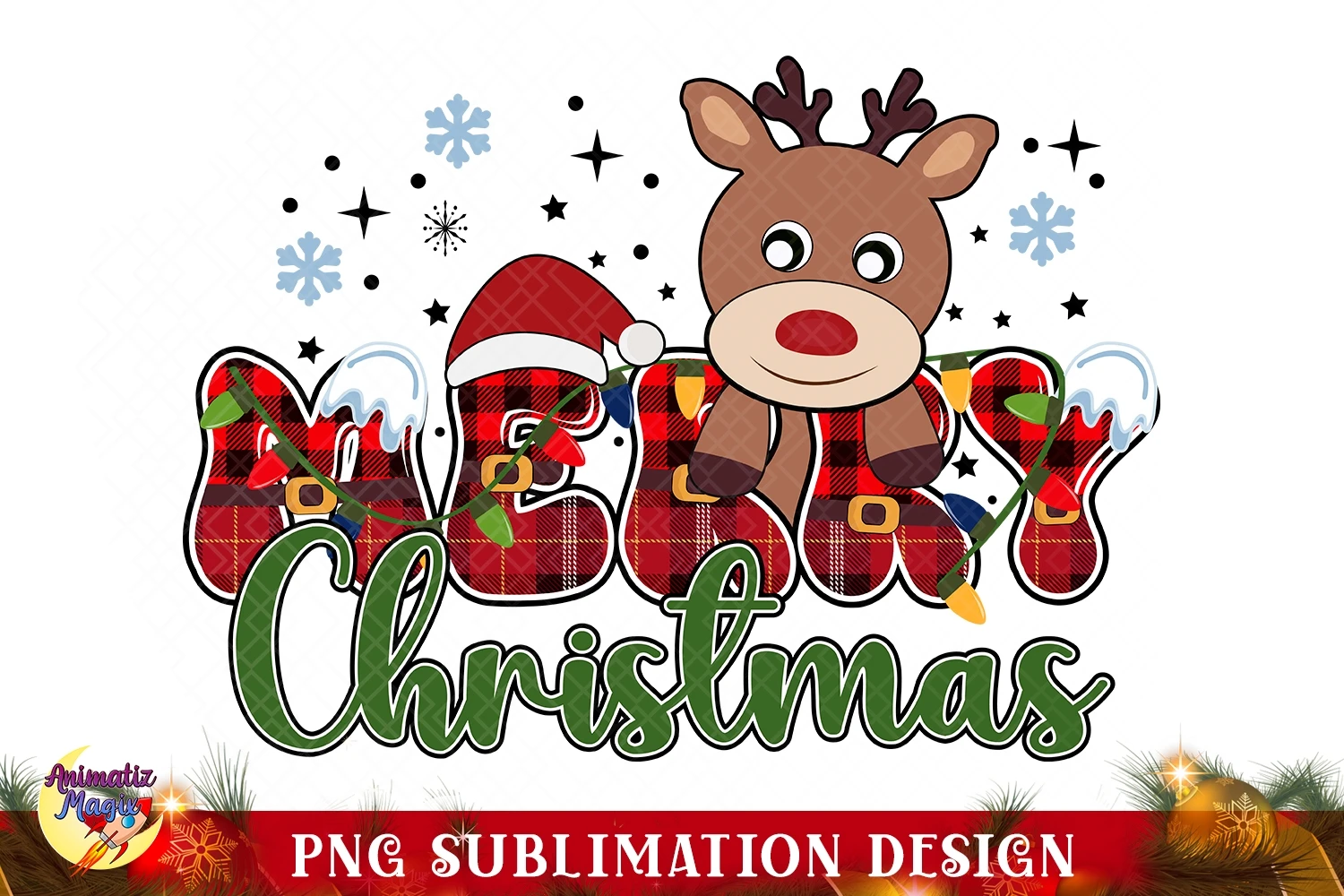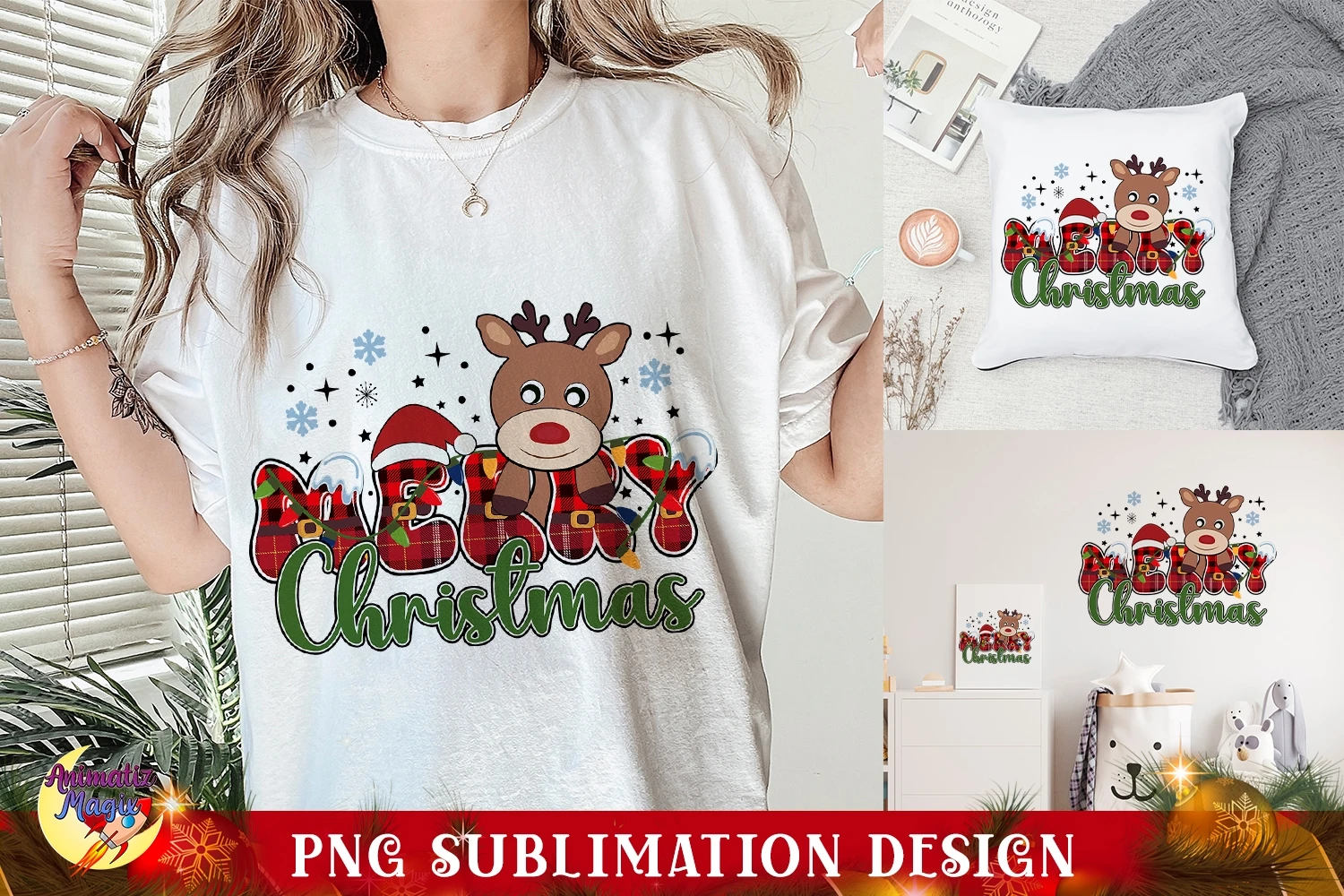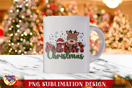 Reindeer Merry Christmas PNG Sublimation