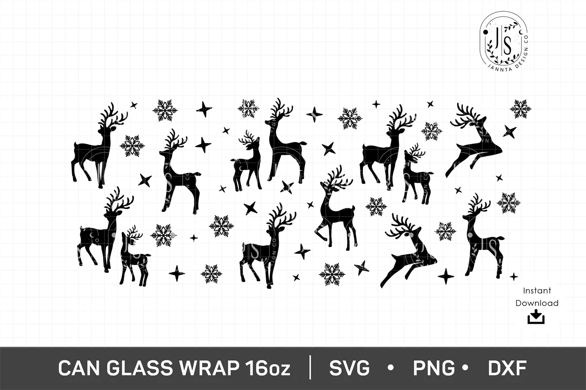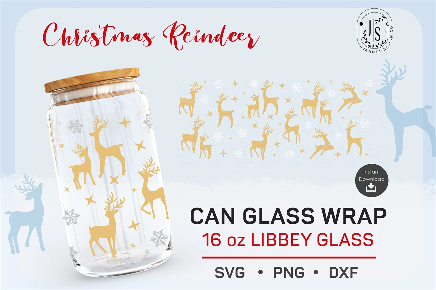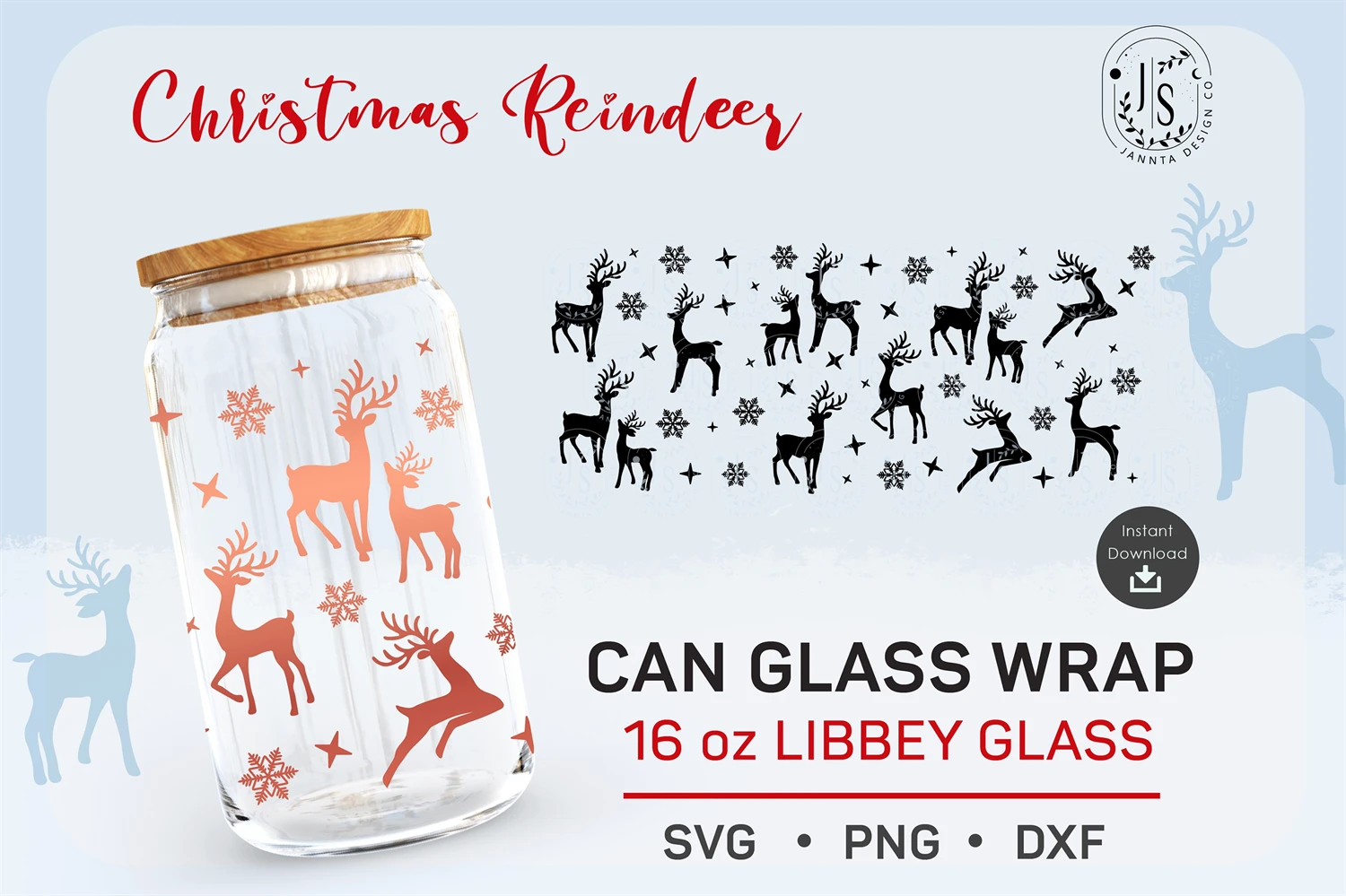 Reindeer SVG, 16oz can glass, Christmas svg, snowflake svg wrap, Merry Christmas SVG, Libbey glass PNG, Svg Files For Cricut, SILHOUETTE, SVG, Iced Coffee Glass, SVG files for Cricut, Libbey beer glass, wrap SVG, SVG files, WRAP TEMPLATE, Full Wrap for Can Glass, Seamless Wraps, PNG Digital Download Template