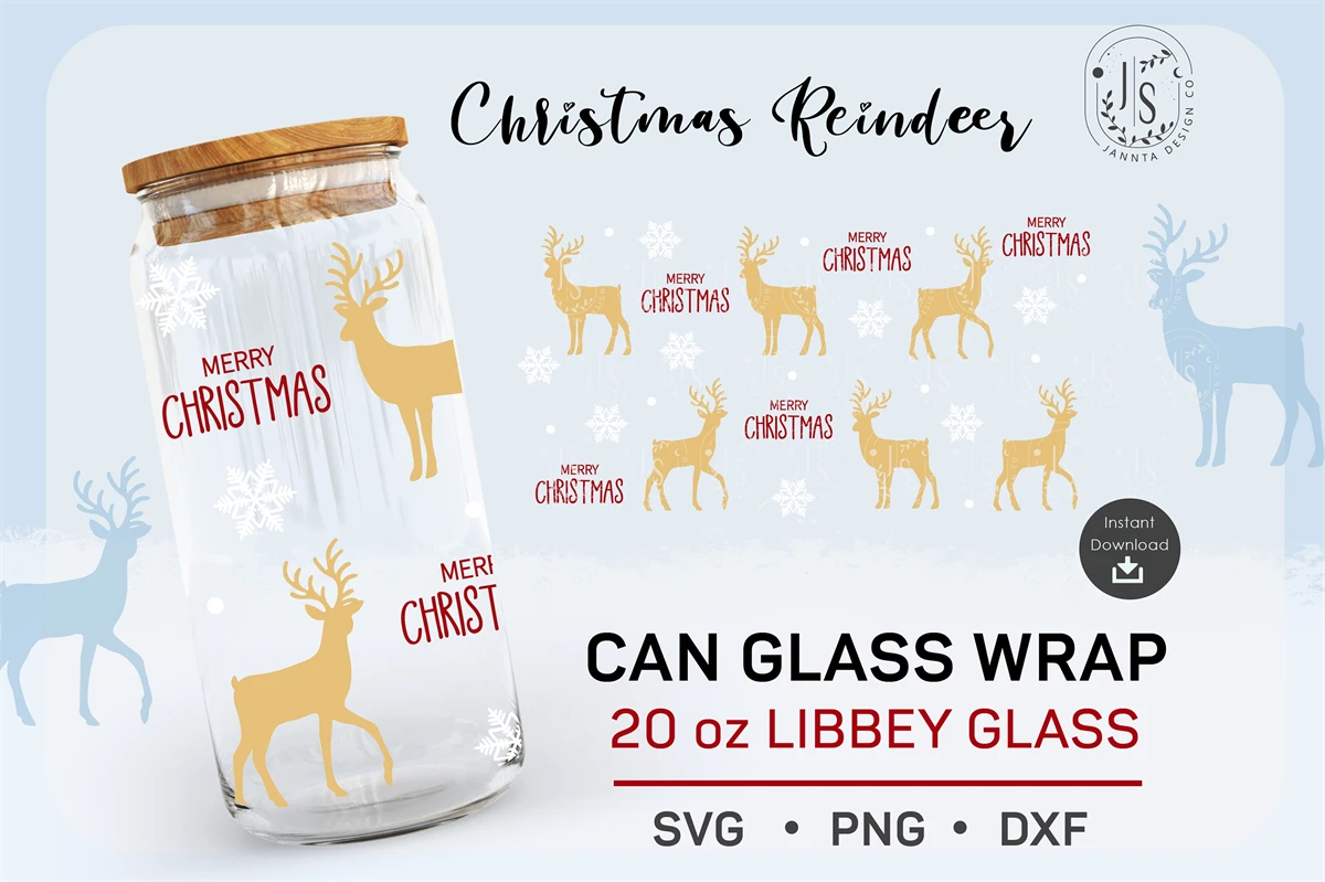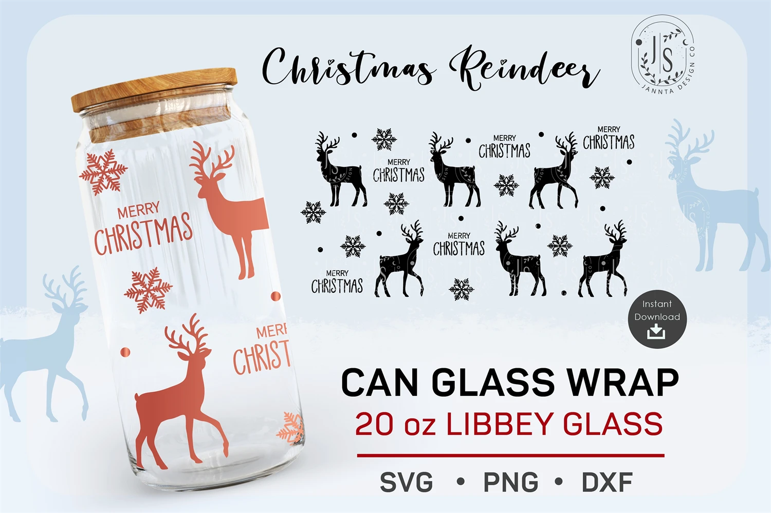 Reindeer SVG, 20oz can glass, Christmas svg, snowflake svg wrap, Merry Christmas SVG, Libbey glass PNG, Svg Files For Cricut, SILHOUETTE, SVG, Iced Coffee Glass, SVG files for Cricut, Libbey beer glass, wrap SVG, SVG files, WRAP TEMPLATE, Full Wrap for Can Glass, Seamless Wraps, PNG Digital Download Template