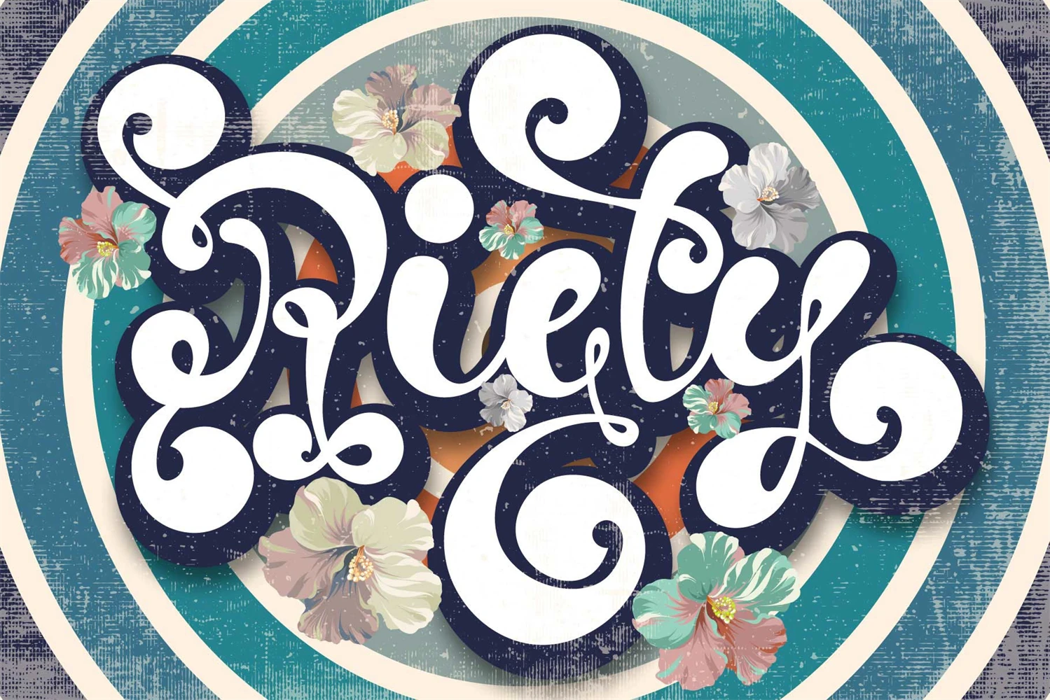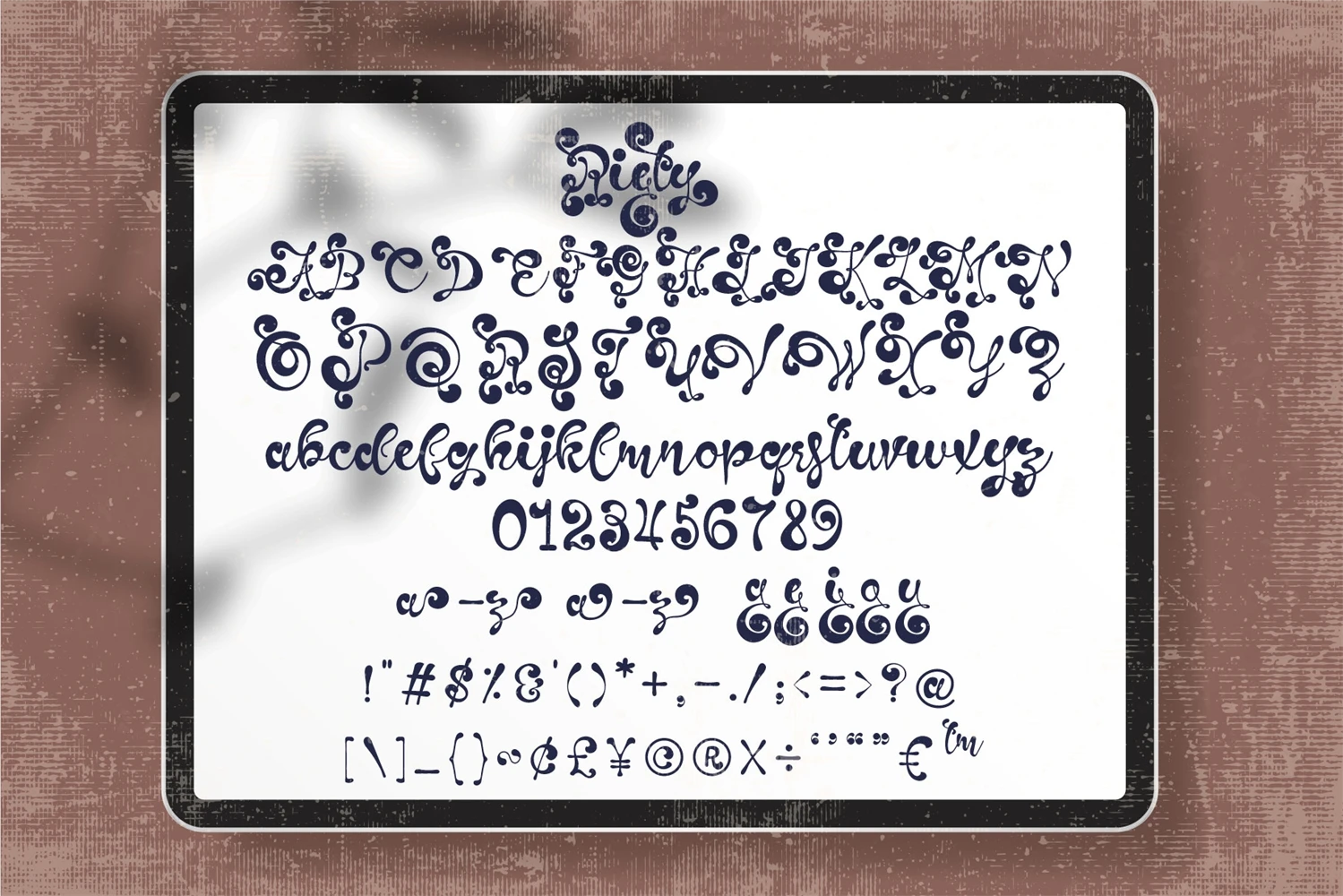 Introducing Riety Font: Where Vintage Meets Modern. This unique display font effortlessly blends the timeless charm of retro typography with a dash of contemporary flair. With its distinctive letterforms and nostalgic aesthetic, Riety Font is your passport to a world of design possibilities. Whether youre crafting vintage-inspired logos, eye-catching posters, or retro-themed branding, this font has the character and versatility to bring your creative visions to life. Elevate your projects with Riety Font and make a statement thats both classic and fresh. Unleash the power of nostalgia in your designs today!