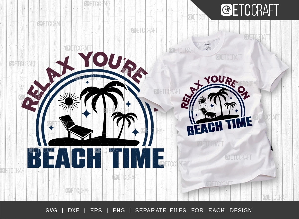 Don't miss out on this fantastic opportunity to add the spirit of summer to your creative endeavors! Whether you're a graphic designer, DIY enthusiast, or simply someone who loves all things summer, the "Relax You're On Beach Time SVG Bundle" will elevate your projects with its joyful and laid-back vibe.