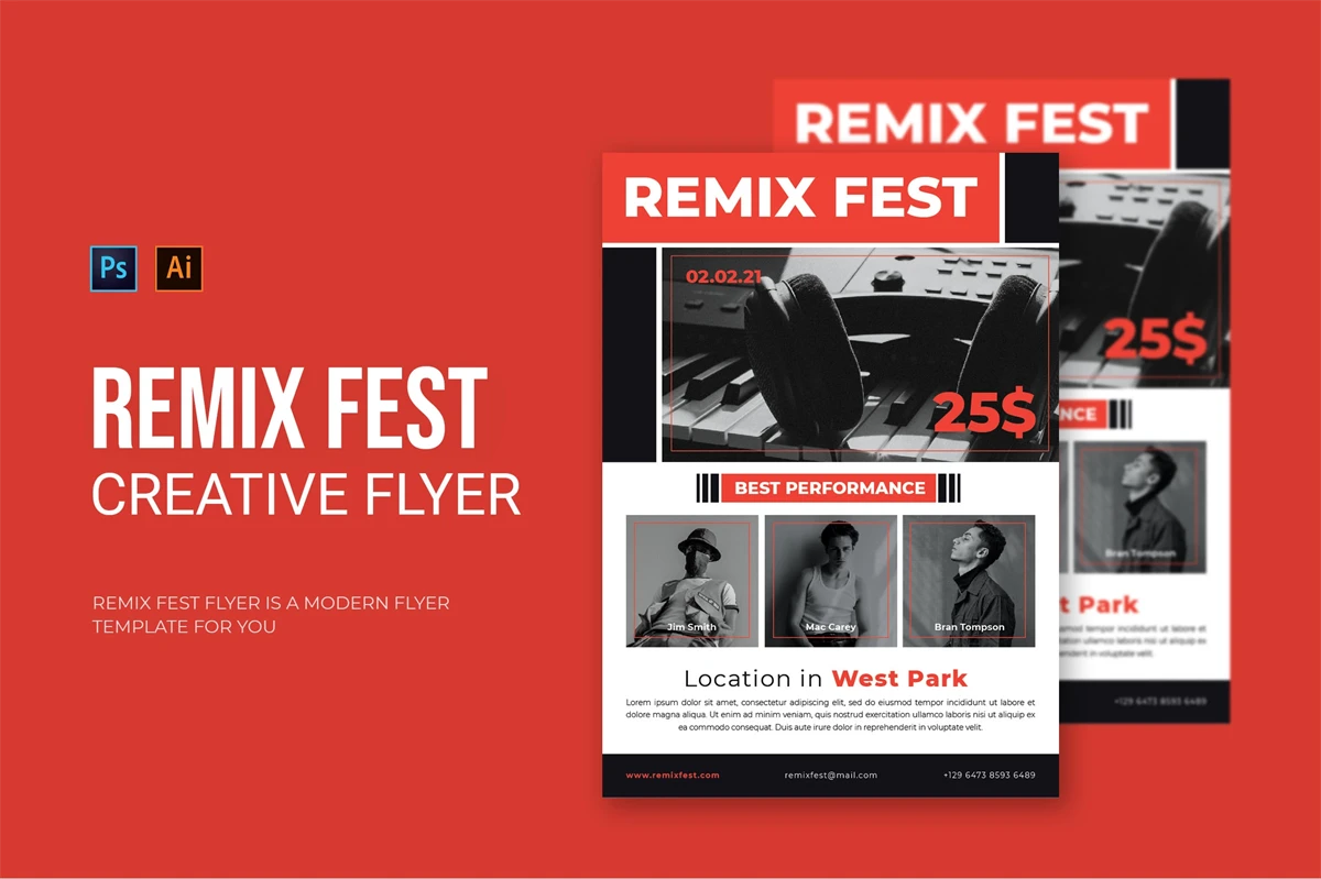 Remix Fest - Flyer. This Flyer template is designed for your company's business needs. very clean and elegant, and also easily edited and adjusted to your liking