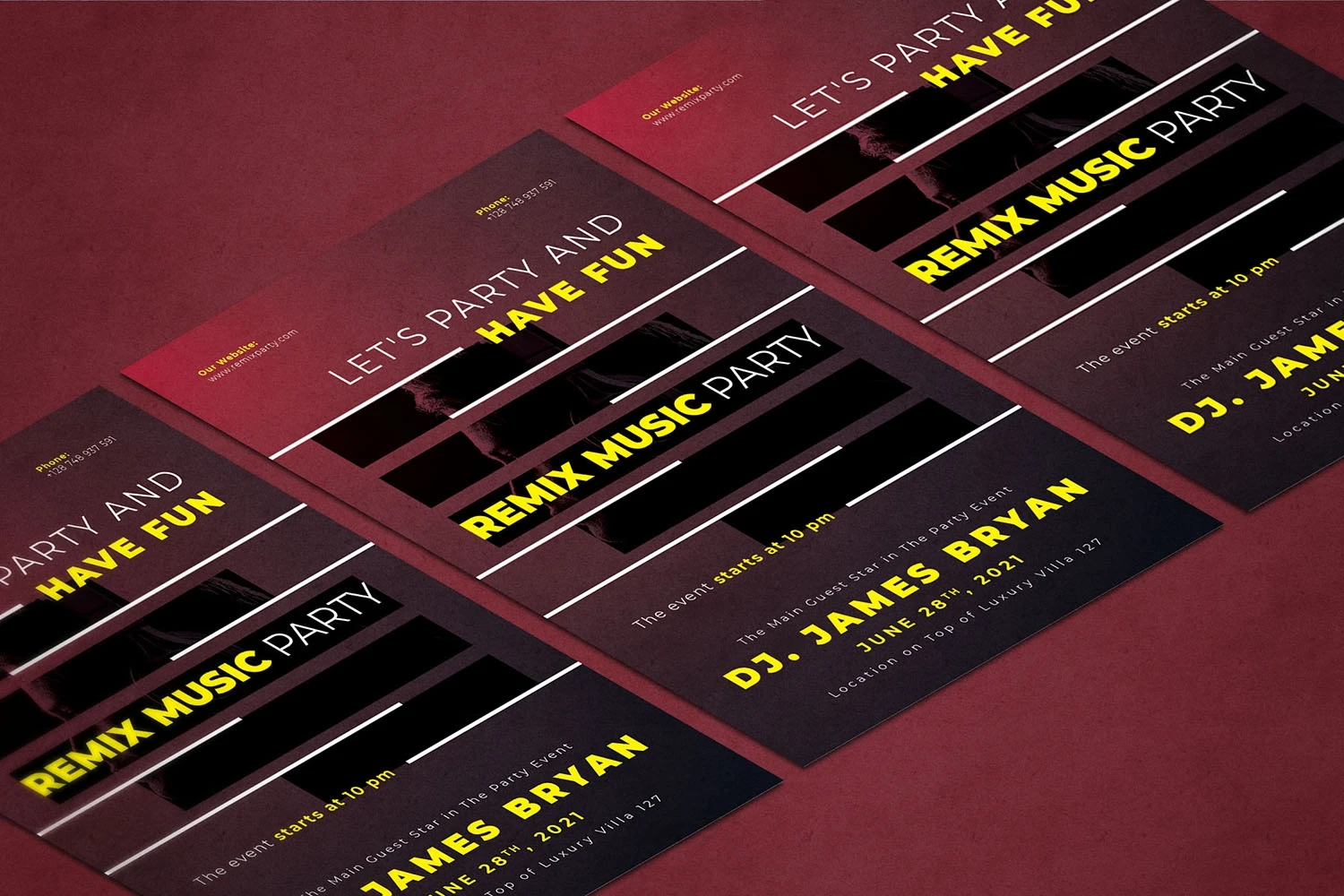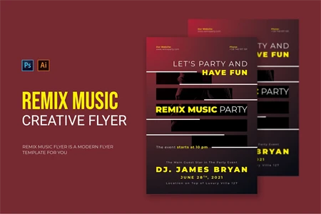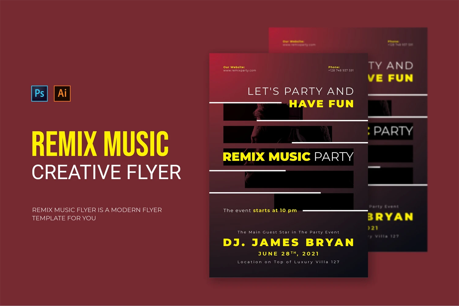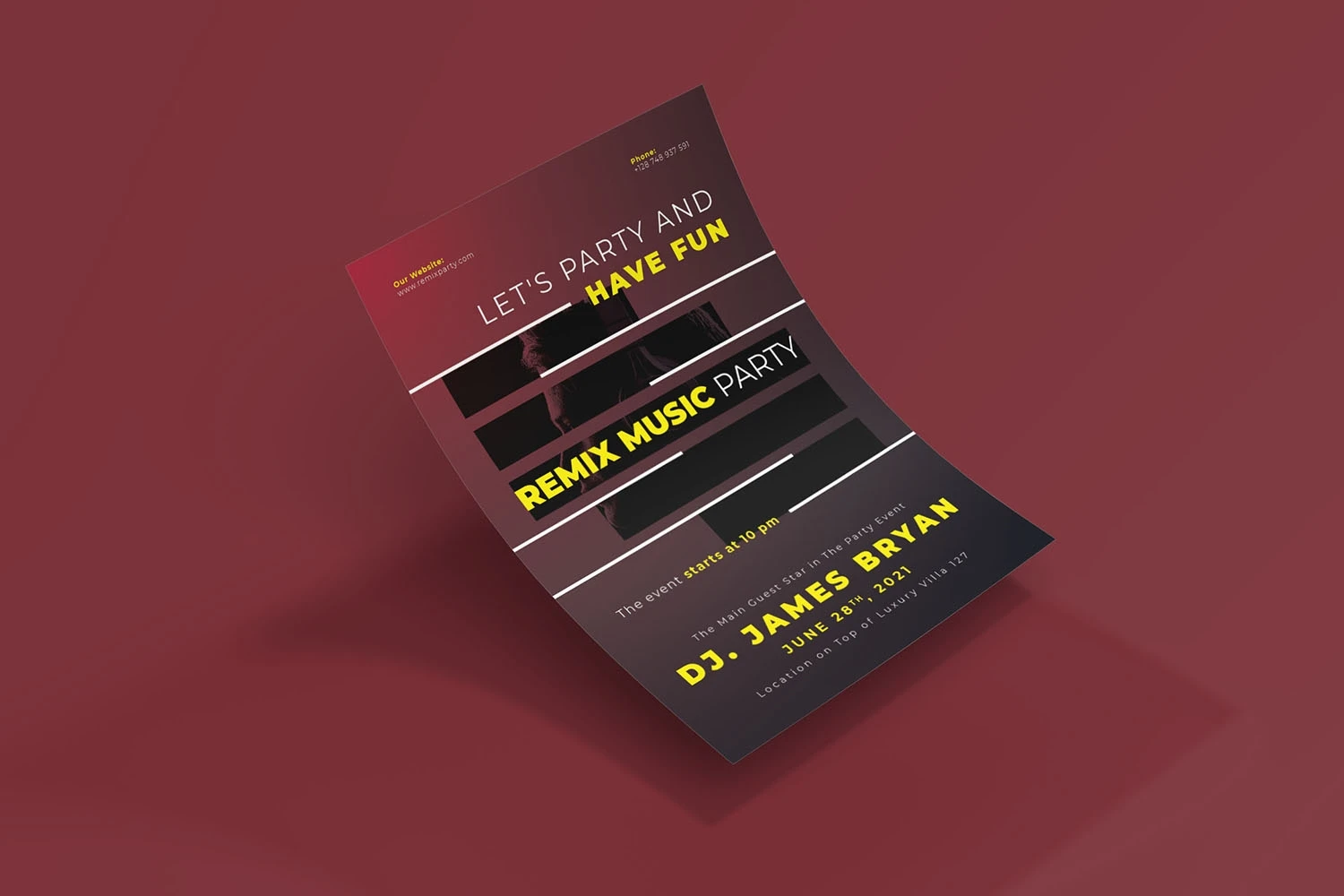 Remix Music Party - Flyer. This Flyer template is designed for your company's business needs. very clean and elegant, and also easily edited and adjusted to your liking